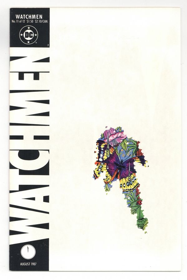 "Look on my works, ye mighty…". Part 11 of 12. Story by Alan Moore. Art and cover by Dave Gibbons. The story of Adrian Veidt is revealed, and we are shown behind the scenes of his motivations. This leads to a final battle with Rorschach and Night Owl. Includes four page fictional text feature with an interview with Adrian Veidt. 32 pages. Full color. No ads. Cover price $1.50.