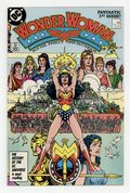 Tags: Wonder Woman$14.00Direct Edition. In this post-Crisis on Infinite Earths re-imagining of the Wonder Woman mythos, Diana is born of clay, growing on Paradise Island to become the champion of the Amazons. "The Princess and the Power!" Part 1 of 6, continued next issue. Script by Greg Potter, co-plot and pencils by George Perez, inks by Bruce Patterson. Perez inks first 2 pages and the final page. Wrap-around cover. No ads. Perez cover. 36 pgs. Cover price $0.75.