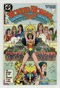 Tags: Wonder Woman$10.00Direct Edition. In this post-Crisis on Infinite Earths re-imagining of the Wonder Woman mythos, Diana is born of clay, growing on Paradise Island to become the champion of the Amazons. "The Princess and the Power!" Part 1 of 6, continued next issue. Script by Greg Potter, co-plot and pencils by George Perez, inks by Bruce Patterson. Perez inks first 2 pages and the final page. Wrap-around cover. No ads. Perez cover. 36 pgs. Cover price $0.75.