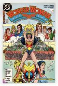 Direct Edition. In this post-Crisis on Infinite Earths re-imagining of the Wonder Woman mythos, Diana is born of clay, growing on Paradise Island to become the champion of the Amazons. "The Princess and the Power!" Part 1 of 6, continued next issue. Script by Greg Potter, co-plot and pencils by George Perez, inks by Bruce Patterson. Perez inks first 2 pages and the final page. Wrap-around cover. No ads. Perez cover. 36 pgs. Cover price $0.75.