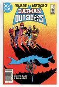 Batman and the Outsiders go their separate ways in "A New War's Winning!" Script by Mike W. Barr, art by Alan Davis. Masters of Disaster appearance. Matches Malone, Batman's undercover criminal guise, appears. Back-up tale: Looker enjoys the perks of being beautiful in "Looker's Body: An Owner's Manual". Script by Mike W. Barr, art by Alan Davis. Davis cover. Cover price $0.75.