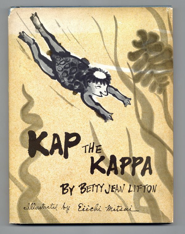 Published 1960 by William Morrow.$30.00First Edition. Written by Betty Jean Lifton and illustrated by Eiichi Mitsui. Deep in the rivers of Japan, there live mischievous little water elves called kappas. This is the story of a young kappa prince named Kap who was accidentally lifted out of the water on the end of a fishing pole. The next thing he knew he had been adopted by a Japanese family. His adventure when he tries to find his way back to his river kingdom is illustrated with the incredible ink work of Mitsui. Hardcover with dust jacket. 8" x 10.25", 64 pages, B&W. Cover price $2.75.