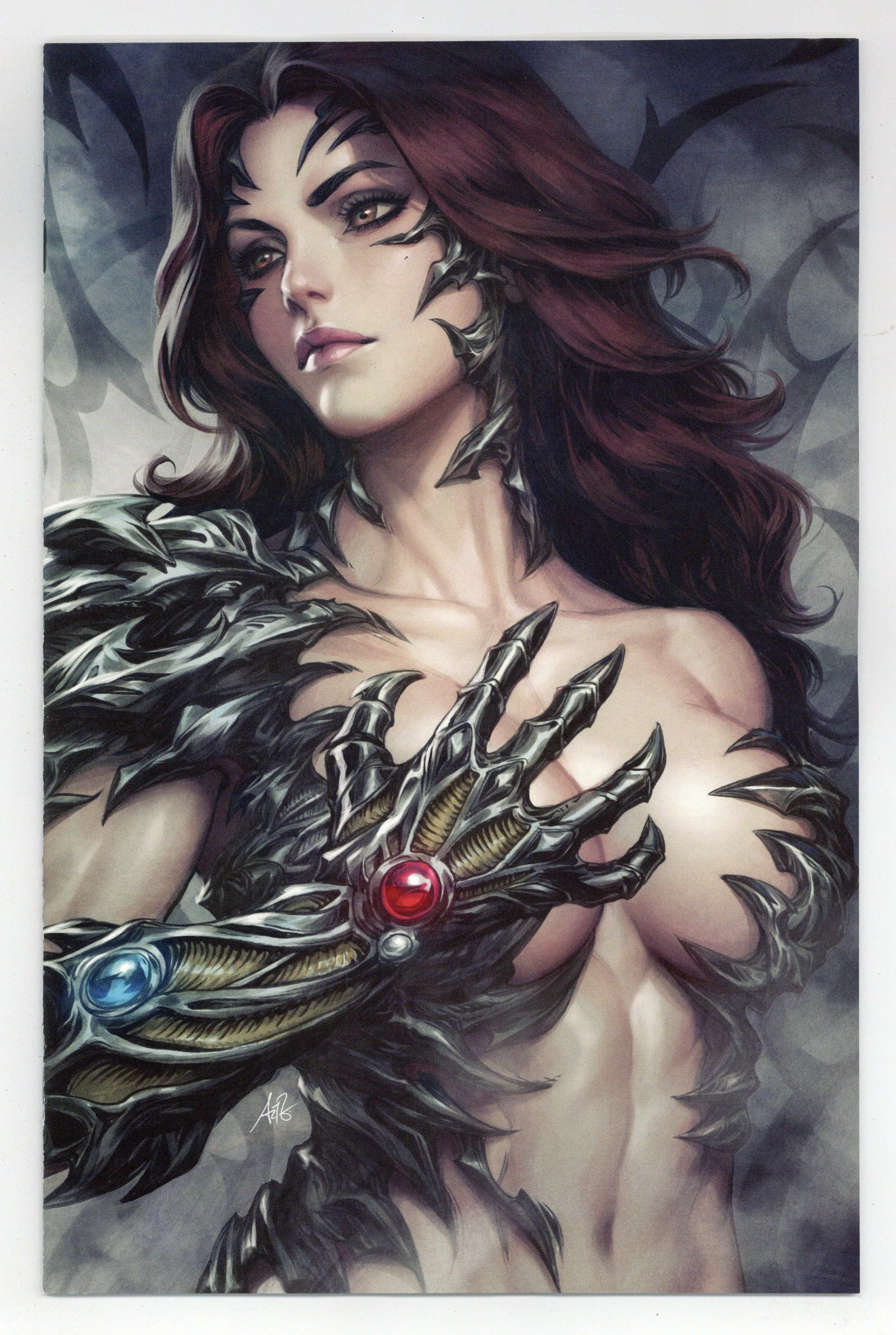 Limited 1 for 50 Retailer Incentive Variant Cover. Written by Marguerite Bennett. Art by Giuseppe Cafaro and Arif Prianto. Cover by Artgerm. KEY ISSUE ALERT, Part 1 In an instant, everything can change. Saras partner Michael Yee has been shot and clings to life by a thread. To save her partner, Sara makes a deal with Kenneth Irons that plunges her deep into the supernatural world of The Harrowing. There, Sara will face trials that connect her future and her past, leading to a reckoning that brings together, or destroys, the supernatural forces that surround her and draws Jackie Estacado, the bearer of The Darkness, closer to realizing what he truly is. Irons has the upper hand, and Sara will be forever changed as his true goal is revealed. This jaw-dropping two-part story arc finale will send shockwaves through the Witchblade fandom and usher in a new era in the saga of Witchblade! 32 pages, full color. Rated T+ Cover price $3.99.