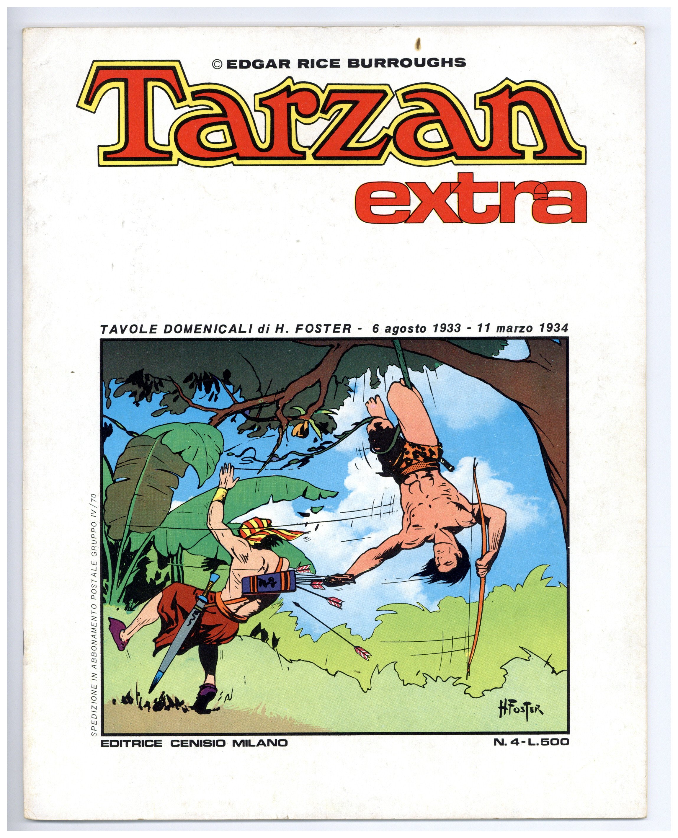 No. 4 - December 1974. Italian publication(Editrice Cenisio) of the Tarzan Sunday Strips by Hal Foster. 10.5" x 13.25", 36 pages, partial color.