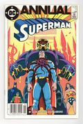 Tags: Superman$60.00Newsstand Edition. "For the Man Who Has Everything!" Guest-starring Wonder Woman, and Batman and Robin. Written by Alan Moore. Art by Dave Gibbons. The amazing creative team that brought you Watchmen deliver one of the all-time great Superman tales. When Batman and Wonder Woman arrive at the Fortress of Solitude for Superman's birthday, they soon discover the evil Mongul has beat them there and enslaved the Man of Steel within a prison of his own mind. How can they possibly hope to defeat this monstrous alien menace without the help of Superman? 48 pages, FC. Cover price $1.25.