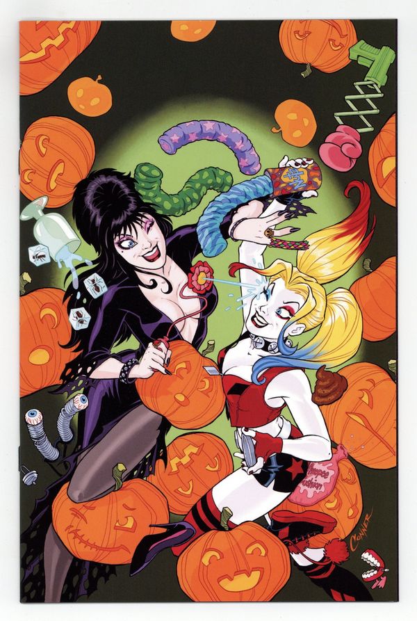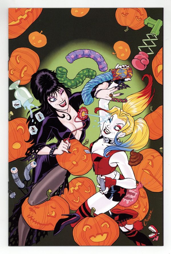 Tags: Harley QuinnPublished by Dynamite Entertainment.$45.00(W) Amanda Conner, Jimmy Palmiotti (A) Amanda Conner, Juan Samu (CA) Amanda Conner THE MISTRESS OF THE DARK MEETS DADDY'S LITTLE MONSTER! What happens when the Clown Princess of Crime gets bored? Shenanigans, hijinks, grievous bodily harm… the possibilities are endless! Now add in a certain macabre-minded TV host who seems to attract trouble like crypts attract vampires, and the stage is set for the greatest team-up since Frankenstein met his Bride! With her beloved show on the chopping block following a corporate takeover, Elvira needs to come up with a plan to get things back in the black - and her new friend Harley Quinn has an idea that's just crazy enough to work! Together, they're going to throw the greatest Halloween party Brooklyn has ever seen - whether the borough likes it or not! Written by AMANDA CONNER and JIMMY PALMIOTTI - the world-famous tag-team of all things Harley Quinn - this crossover event for the ages from Dynamite and DC Comics also showcases Amanda's fan-favorite artistic chops, with each issue featuring two (count 'em, two) Conner covers. And that's not all (certainly not!) - she's also joining interior artist (and Elvira favorite) JUAN SAMU to provide selected story pages for the series! But wait, there's more! This premier issue also includes darkly captivating covers from JOSEPH MICHAEL LINSNER, CHAD HARDIN, BEN CALDWELL, and best-selling Mark Spears Monsters creator MARK SPEARS! Cover price $50.00.