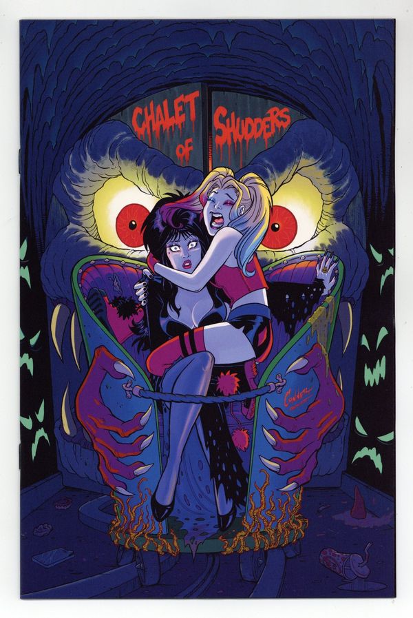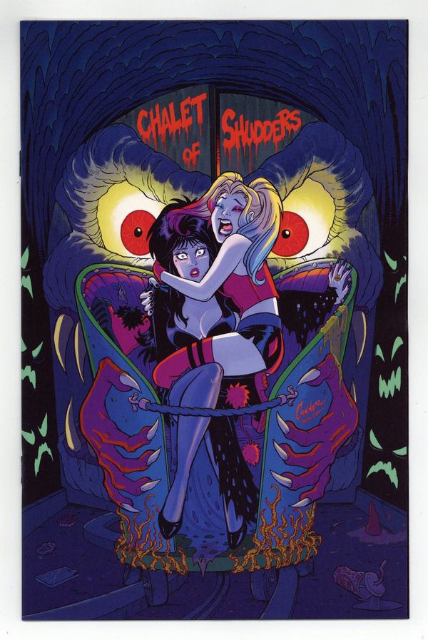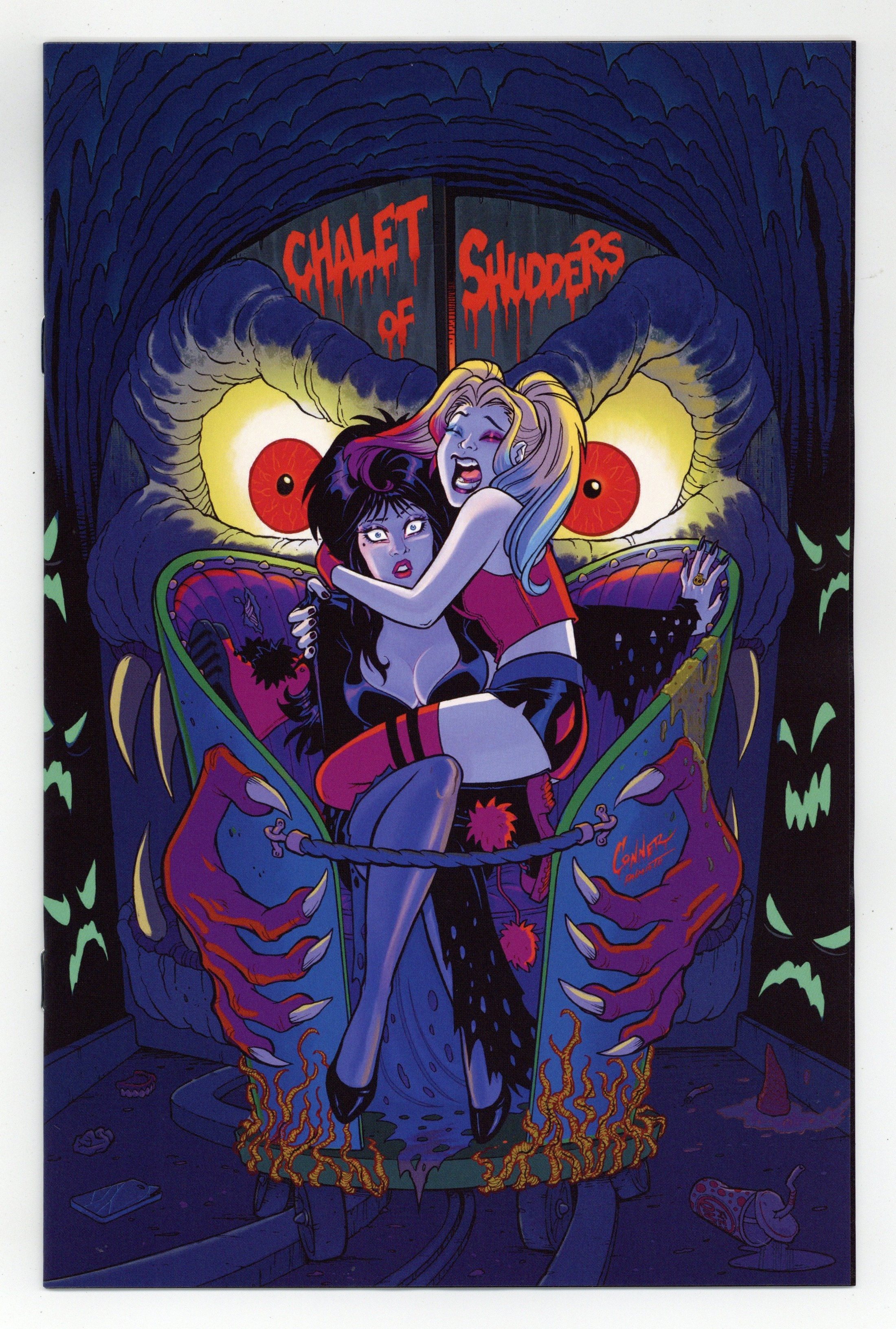 Limited 1 for 50 Retailer Incentive Variant Cover. (W) Amanda Conner, Jimmy Palmiotti (A) Amanda Conner, Juan Samu (CA) Amanda Conner THE MISTRESS OF THE DARK MEETS DADDY'S LITTLE MONSTER! What happens when the Clown Princess of Crime gets bored? Shenanigans, hijinks, grievous bodily harm… the possibilities are endless! Now add in a certain macabre-minded TV host who seems to attract trouble like crypts attract vampires, and the stage is set for the greatest team-up since Frankenstein met his Bride! With her beloved show on the chopping block following a corporate takeover, Elvira needs to come up with a plan to get things back in the black - and her new friend Harley Quinn has an idea that's just crazy enough to work! Together, they're going to throw the greatest Halloween party Brooklyn has ever seen - whether the borough likes it or not! Written by AMANDA CONNER and JIMMY PALMIOTTI - the world-famous tag-team of all things Harley Quinn - this crossover event for the ages from Dynamite and DC Comics also showcases Amanda's fan-favorite artistic chops, with each issue featuring two (count 'em, two) Conner covers. And that's not all (certainly not!) - she's also joining interior artist (and Elvira favorite) JUAN SAMU to provide selected story pages for the series! But wait, there's more! This premier issue also includes darkly captivating covers from JOSEPH MICHAEL LINSNER, CHAD HARDIN, BEN CALDWELL, and best-selling Mark Spears Monsters creator MARK SPEARS! Cover price $4.99.