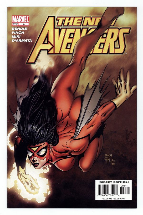 Written by BRIAN MICHAEL BENDIS Pencils & Cover by DAVID FINCH. The New Avengers assemble and come face-to-face with the mystery threat that brought them together in the first place. Plus ? it's unbreakable shield versus adamantium claw. Who will win? It's wall-to-wall crazy! And thanks to you, it's the biggest comic of 2005. 32 PGS./Marvel PSR ...$2.25 Cover price $2.25.