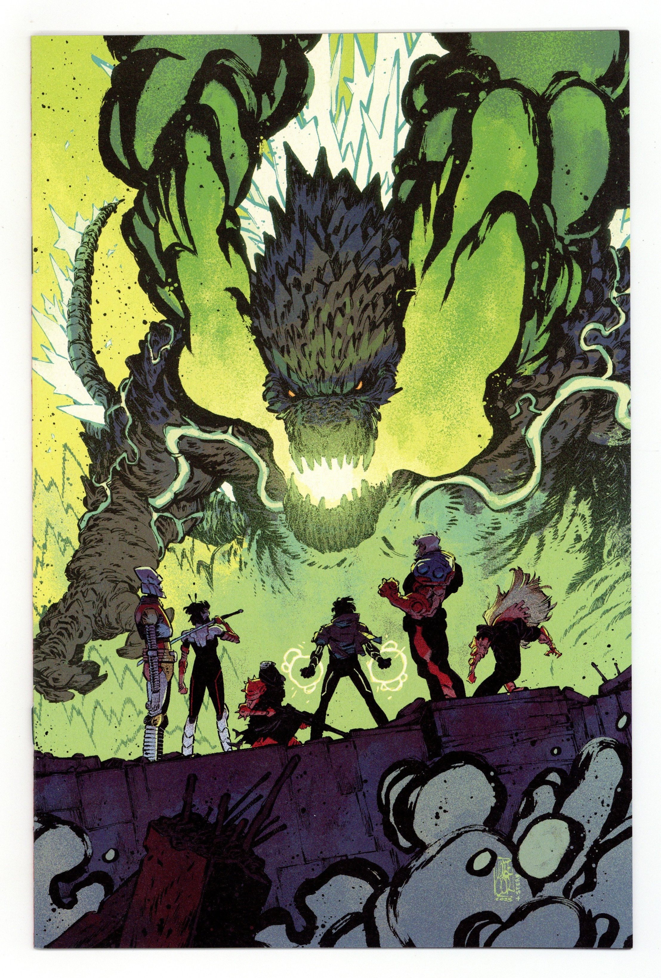 Tags: GodzillaPublished Sep 2025 by IDW Publishing.$20.00Limited 1 for 25 Retailer Incentive Variant Cover. Written by Tim Seeley. Art by Nikola Cizmesija. Cover by Jorge Corona. After a shocking first issue, the flagship ongoing of the Kai-Sei era is back with more!Jacen and his fellow G-Force members made short work of Anguirus…but were they only able to defeat the kaiju because it was weakened by the same leeches currently fighting to bring Jacen to a watery grave? And if these leeches are able to weaken kaiju…can G-Force weaponize them in their mission to kill Godzilla?And finally, learn more about Lament, the mysterious new kaiju who seems to be puppeteering from the shadows.All this and more in Tim Seeley and Nikola Čižmešijas thrilling new series! 28 pages, full color. Cover price $4.99.