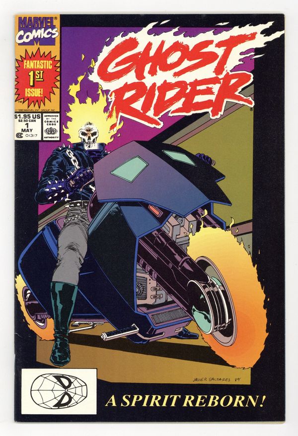 Tags: Ghost Rider$30.00Direct Edition. "Life's Blood!" Written by Howard Mackie. Art by Javier Saltares and Mark Texeira. The Spirit of Vengeance returns! But who is this new Ghost Rider and what is his new mission. The House of Ideas redefines the supernatural for the 90s! Kingpin cameo. 32 pages, FC. NOTE: 1st appearance of Danny Ketch (Ghost Rider II) and 1st appearance of Deathwatch. Cover price $1.95.
