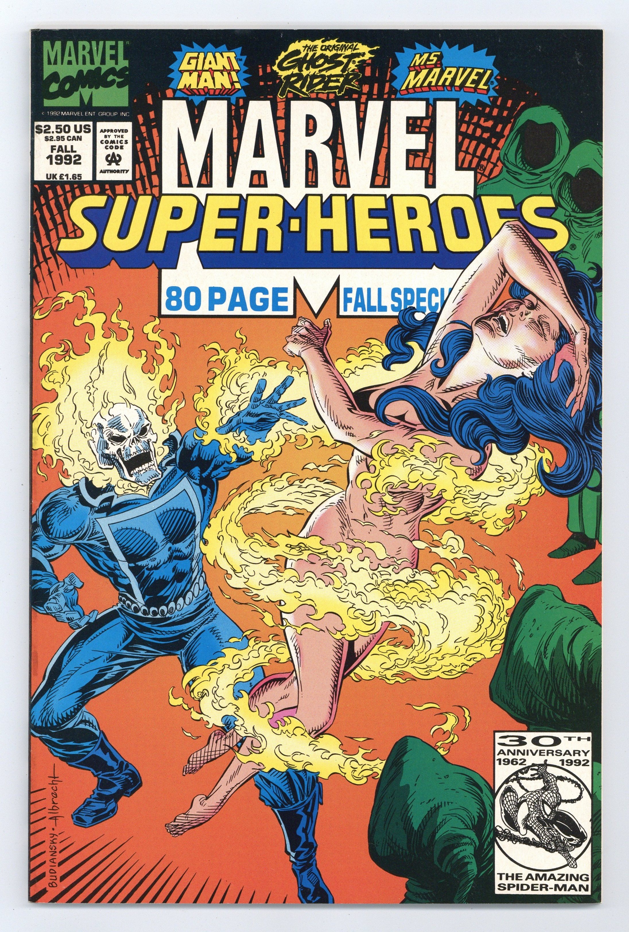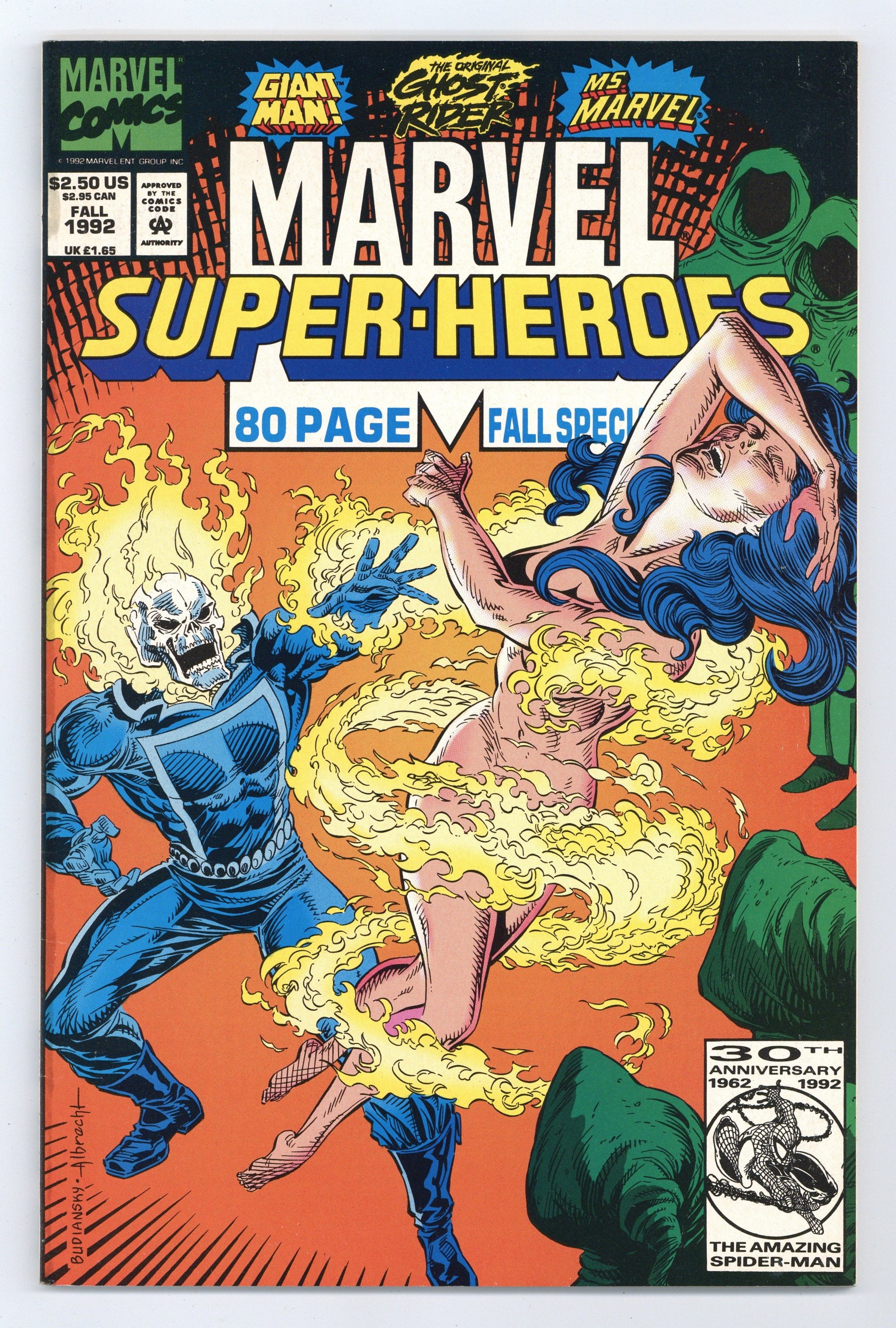 Previously unpublished issue #25 of the Ms. Marvel (1st series). Originally written and drawn in 1979 (with several pages of new material). First chronological appearance of Rogue. "Cry, Vengeance!" Script by Chris Claremont. Art by Mike Vosburg. To find the killer of her dear friend, Carol Danvers travels all the way to Hong Kong! But upon her arrival, Ms. Marvel finds herself caught between a rock and a hard place: the Hellfire Club and the Brotherhood of Evil Mutants! Wow, an all-star cast of X-villains! However with great skill and determination, Ms. Marvel survives her Asian adventure! But when she returns home to San Francisco (after the events of Avengers 200), her first and final battle vs. Rogue begins! Sadly, sometimes the good guys don't win. A heartbreaking end for Ms. Marvel. Appearances by Mystique, Destiny, Rogue. Pyro, Avalanche, Sebastian Shaw, Harry Leland, Donald Pierce, and Tessa. Cameo appearances by Iron Man, Spider-Woman, Wolverine, and Storm. (Notes: Carol Danvers story continues in Avengers Annual 10. The added material was scripted by Simon Furman and drawn by Mike Gustovich.) Second story: "Not to Touch the Earth!" Guest-starring Bill Foster as Giant Man. Plot by Jim Shooter. Script by Dwayne McDuffie. Pencils by Bob Budiansky and Don Hudson. Inks by Manny Manos and Chris Ivy. Giant Man battles a new villain who has the power to levitate! Third story: "Fireworks!" Guest-starring Ghost Rider (aka Johnny Blaze). Script by Tina Chrioproces. Pencils by Greg LaRocque. Inks by Vince Colletta. Johnny Blaze and Red Fowler roll into a small town and get mixed up with a dangerous survivalist colony! And the only way out...is to unleash the Ghost Rider! Fourth feature: Pin-up of Ms. Marvel and Mystique by Mike Vosburg. (Note: Cover by Bob Budiansky and Jeffrey Albrecht.) 80 pages. Cover price $2.50.