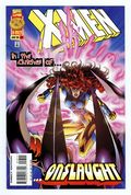 Tags: Onslaught (part 2)$9.00Direct Edition. Cover pencils by Andy Kubert, inks by Cam Smith. False Fronts, script by Mark Waid, pencils by Andy Kubert, inks by Cam Smith and John Dell (pg. 6); Onslaught pulls Jean into the astral plane and casts aspersions on Xavier's character and his dream; Jean refuses to join him (of course) which makes the mysterious villain in Magneto like costume very mad indeed; Cont. in Uncanny X-Men #334. Cover price $1.95.