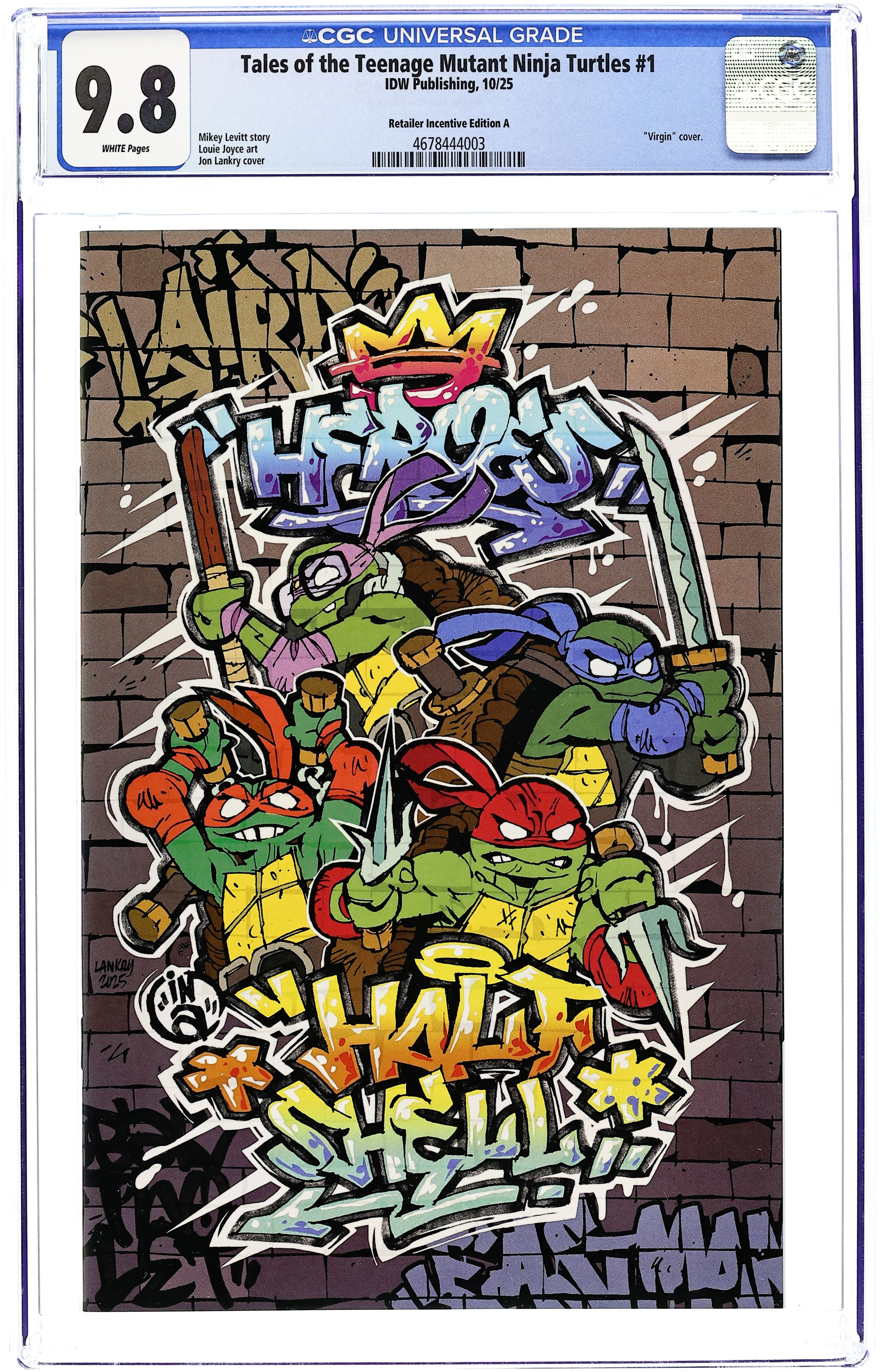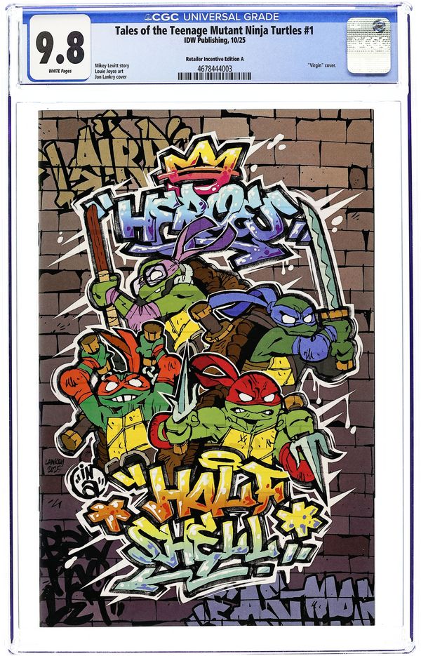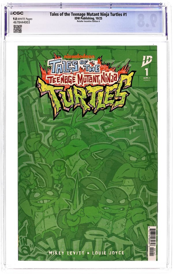 Limited 1 for 50 Retailer Incentive Variant Cover. (W) Mikey Levitt (A) Louie Joyce (CA) Jon Lankry New tales of the TMNT based on the newest Ninja Turtles animated series! When Donatello is invited to a prestigious robotics camp for genius kids, he’s excited to rebuild Metalhead and compete for the camp’s prize for best robot. But when the competition goes haywire, Donnie’s forced to wonder who really invited him, and what do they want with Metalhead?By debut comics writer Mikey Levitt (Tales of the TMNT production team) and neon punk comics artist Louie Joyce (Godzilla: Skate or Die, Haphaven, Past the Last Mountain). Cover price $4.99.