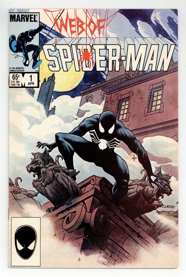 Ends Dec 15 10:06 PM CST Bid History 6 bids Current Bid $21 Your Secret Max Bid If you'd like to bid, please log in or register. Direct Edition. "Til Death Do Us Part!" Story by Louise Simonson. Art by Greg LaRocque and Jim Mooney. Painted cover by Charles Vess. The alien symbiote (aka black costume) ambushes Peter Parker while he is getting dressed. Now Spider-Man must battle the black costume and the new Vulturions on his way to the Baxter Building! Meanwhile, Aunt May laments Peter's decision to drop out of graduate school. (Note: The Web of Spiderman series essentially replaced the Marvel Team-Up title as Marvel's third regular series featuring Spider-Man.) 32 pages Cover price $0.65.