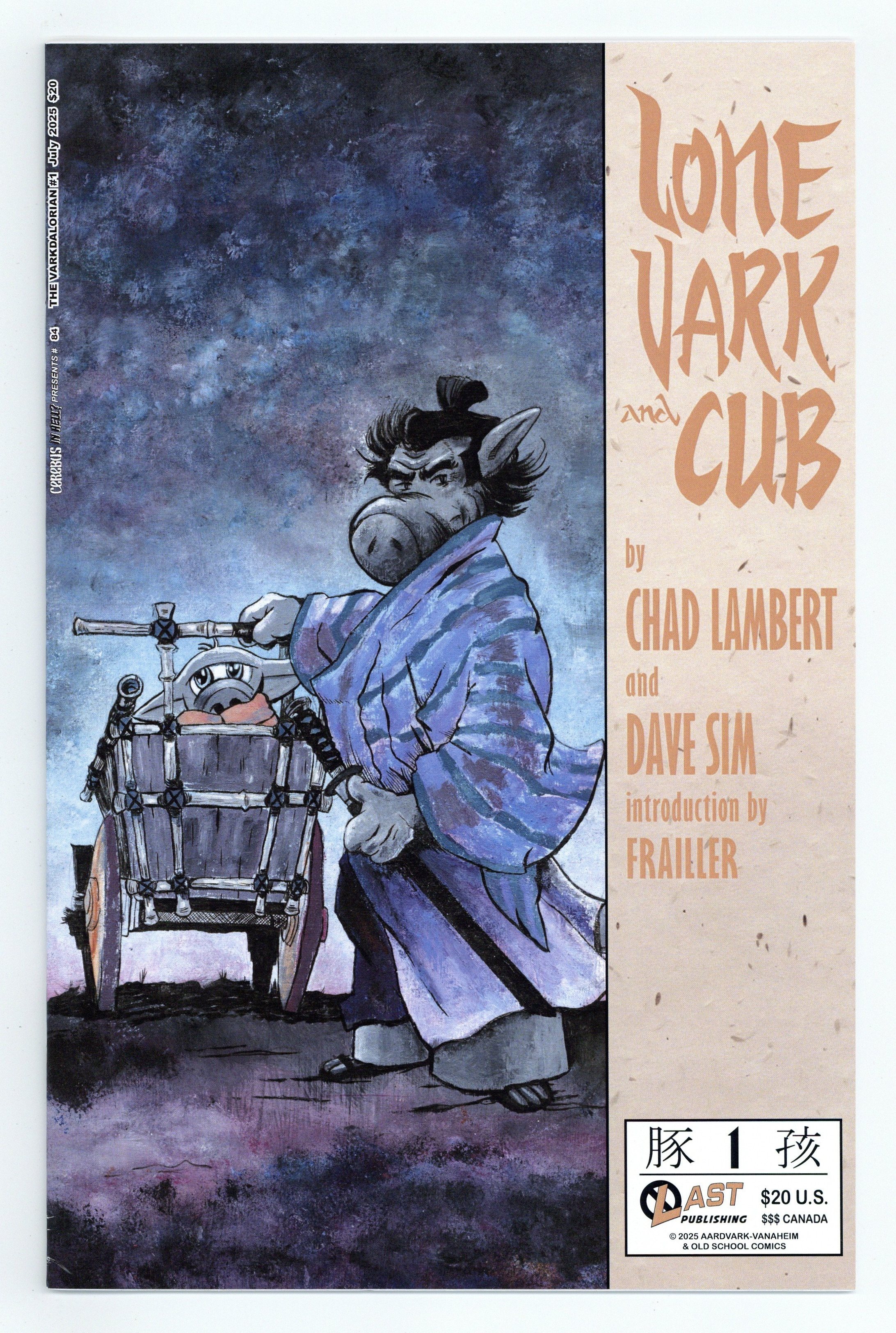 Published Aug 2025 by Aardvark-Vanaheim.$20.00Offered previously on Kickstarter, all copies signed and numbered by Dave Sim! Limited to ONLY 143 copies! Written by Chad Lambert. Art by Dave Sim. Cerebus in Hell? issue 84 raids the load pans of two mostly famous sci-fi franchises and one long forgotten, but still hazily remembered 1970s television program (everybody remembers the lovely ladies). SWKRPST, indeed. Sim and Birdsong admit they never read the comics or saw the show, but the young folks assure us that Lucasfilms TOTALLY ripped off Kazuo Koike and Goseki Kojima! We're taking it back! 24 Pgs, B&W. Cover price $20.00.