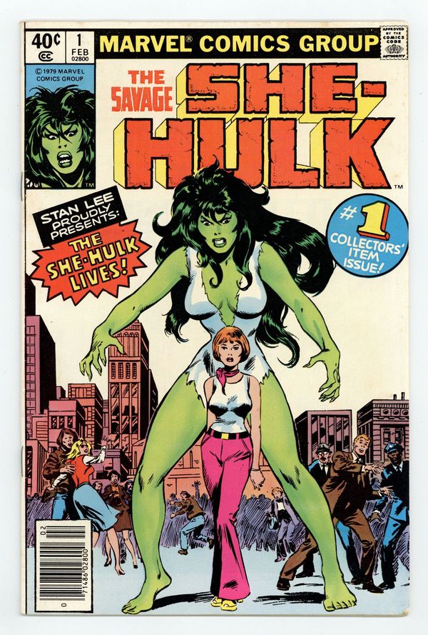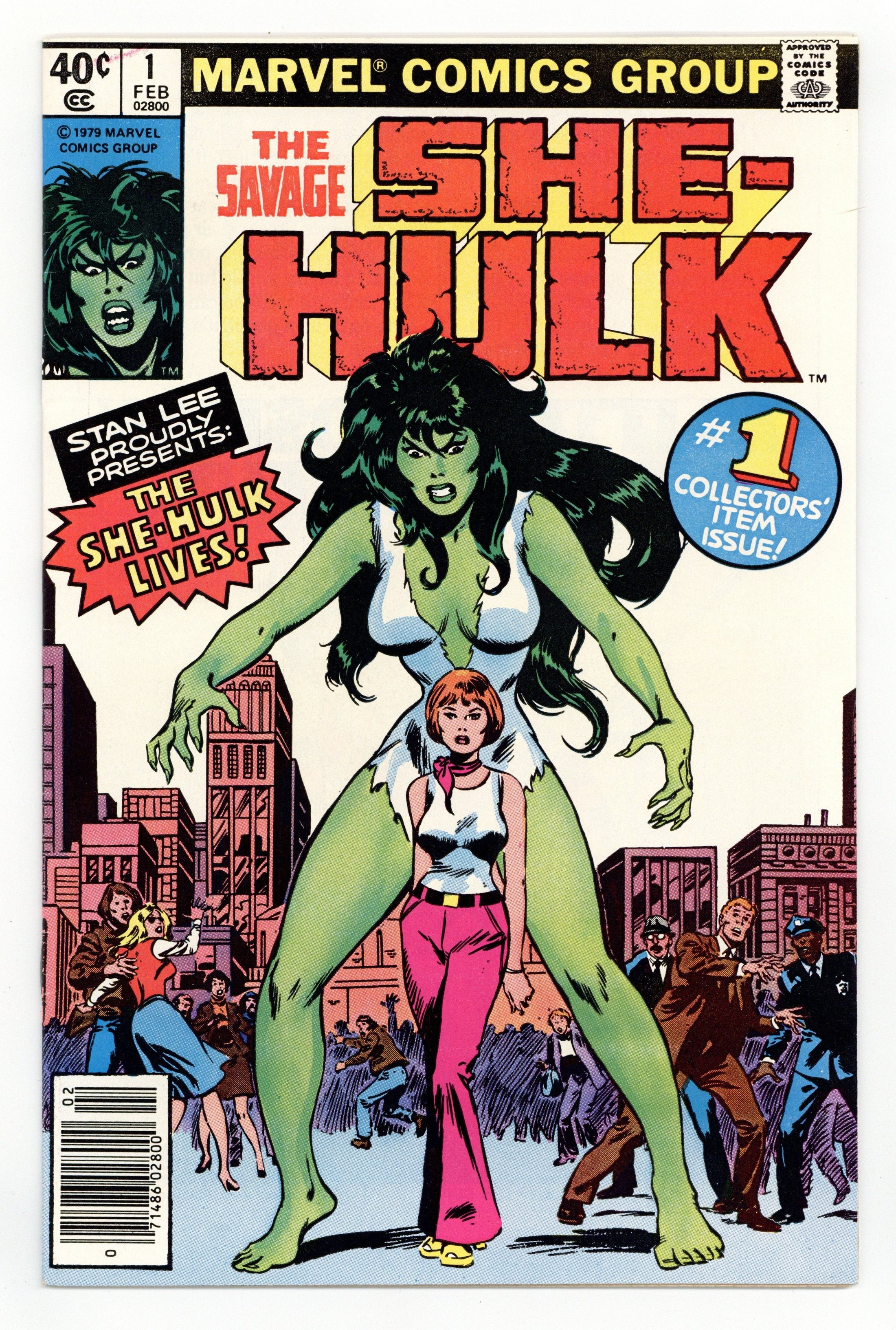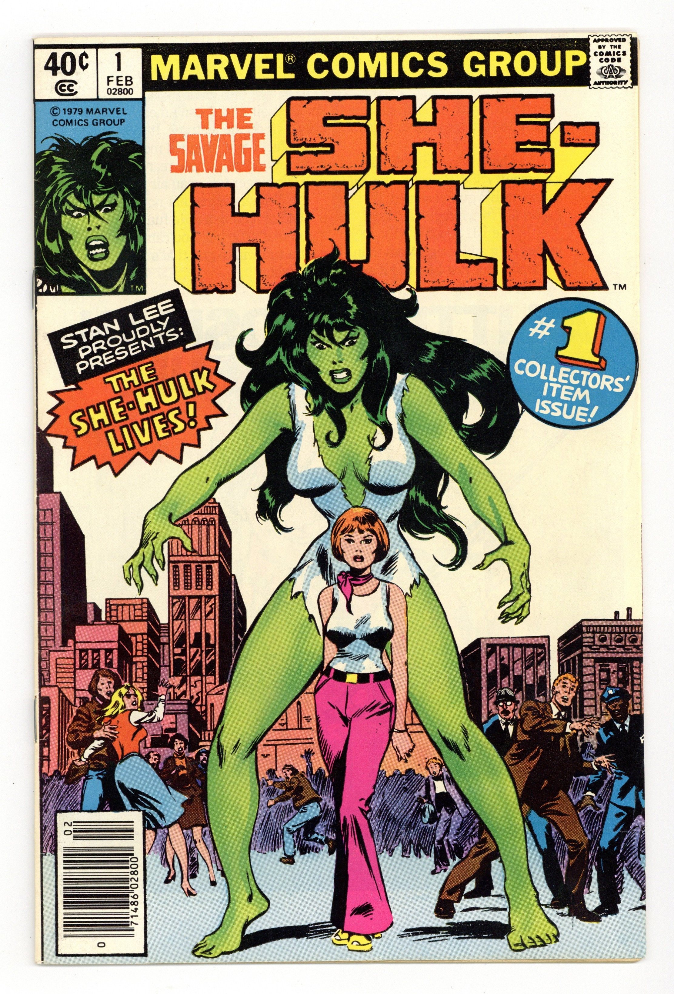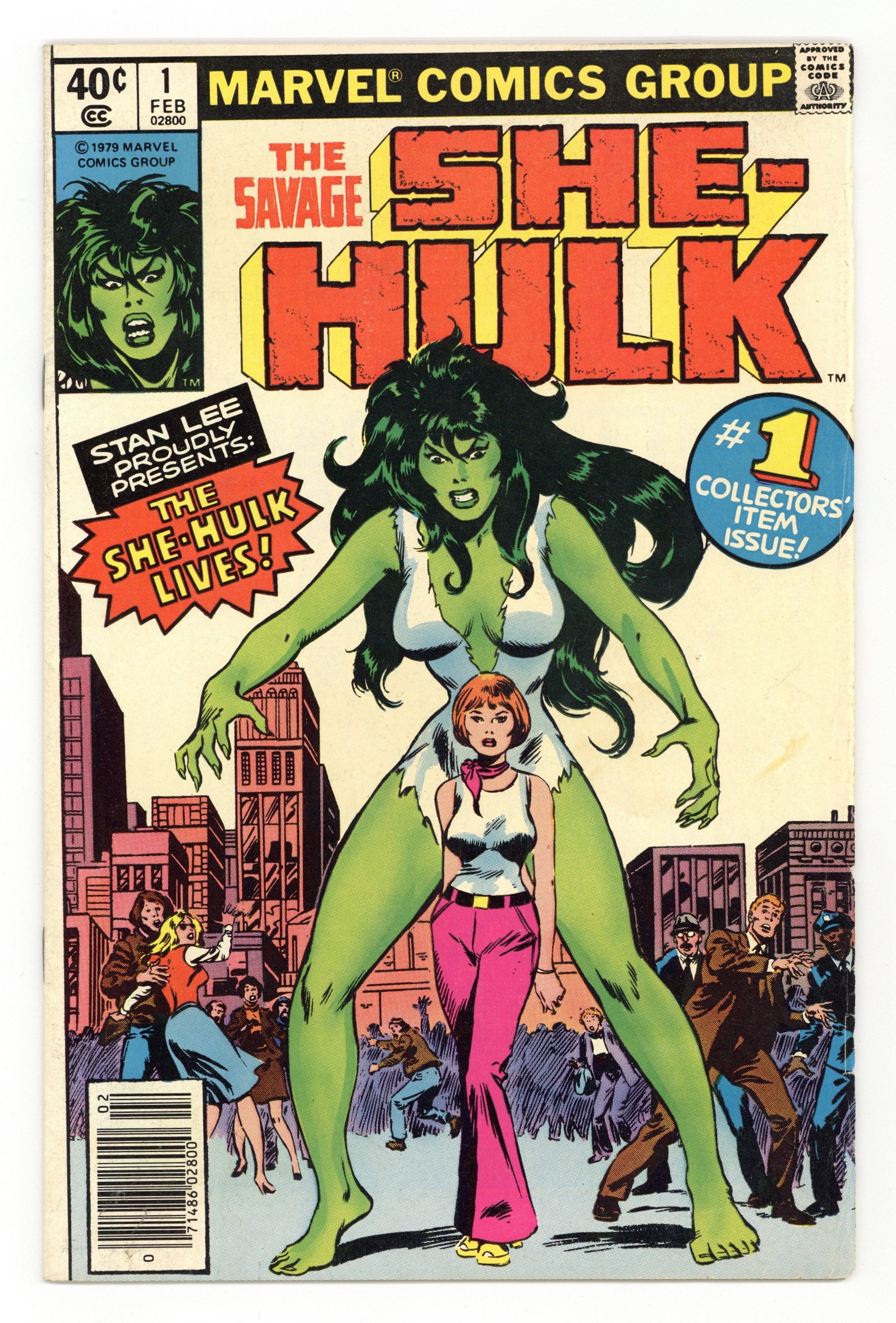 Tags: Marvel Legacy Numbering: She-Hulk (part 1)$75.00Newsstand Edition. 1st appearance and origin of the She Hulk. "The She-Hulk Lives!" Guest-starring Bruce Banner. Story by Stan Lee. Art by John Buscema and Chic Stone. Jennifer Walters is on the verge of death after an attempted assassination, and the only thing that will save her life is a blood transfusion from her cousin, Bruce Banner...AKA the Incredible Hulk! His gamma-irradiated blood sparks a startling transformation in his cousin, and she will forevermore be known as the Savage She-Hulk! Cover price $0.40.