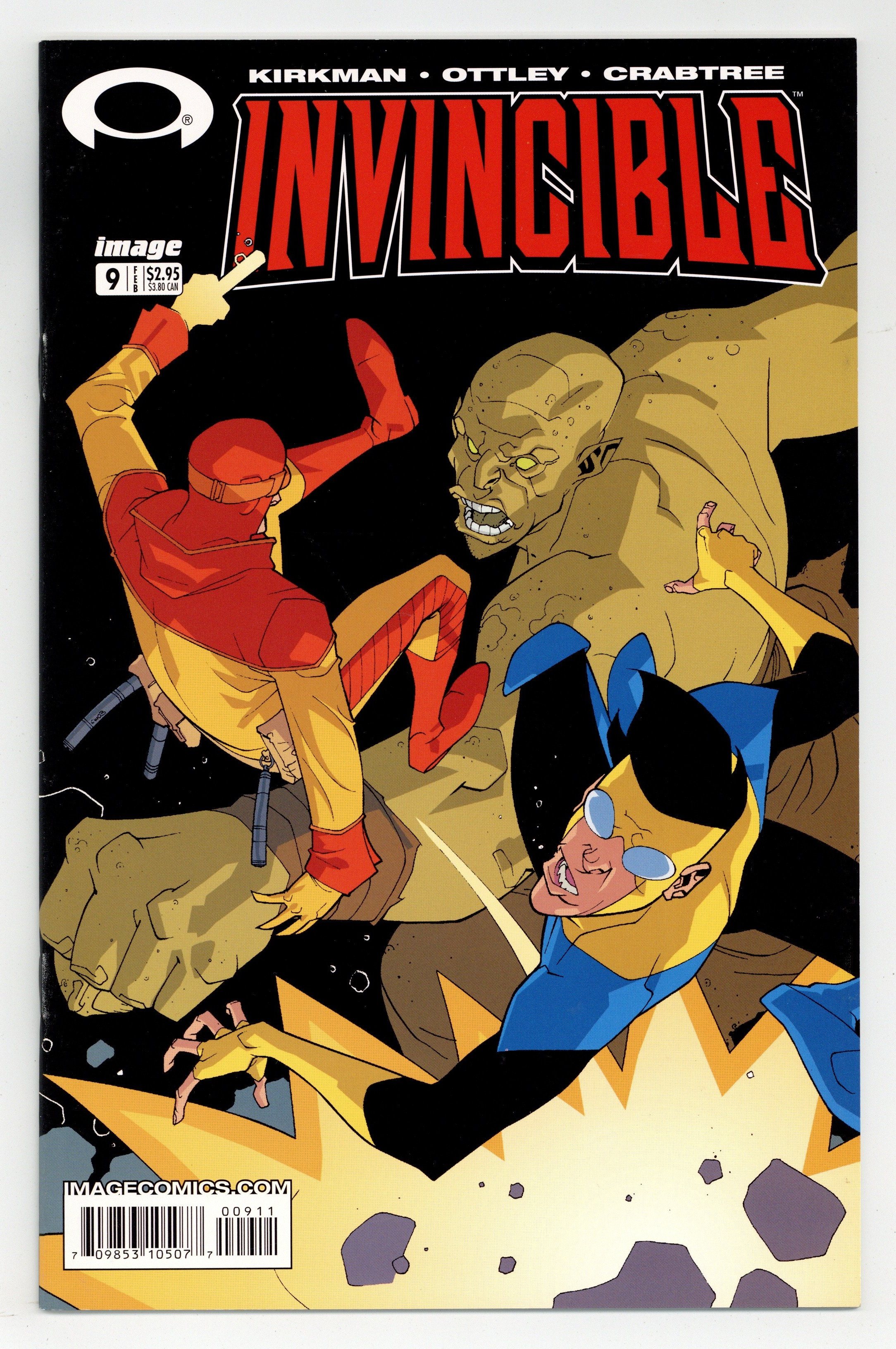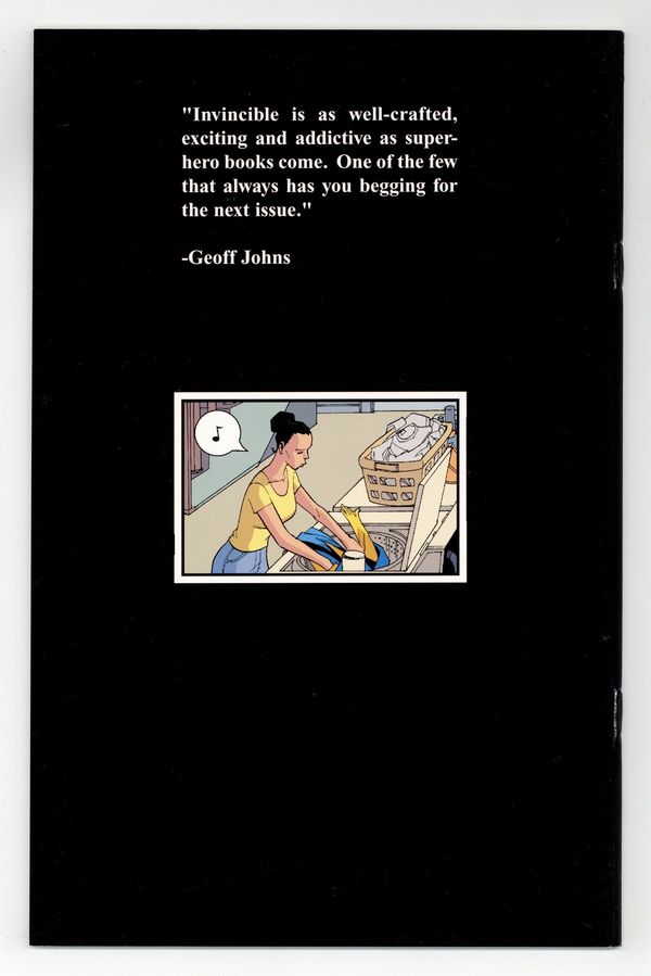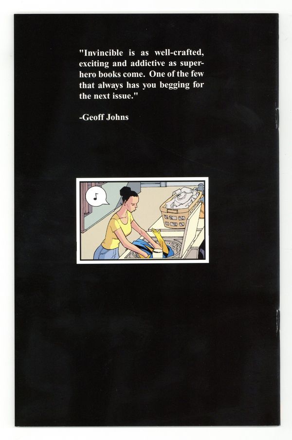 $200.00(W) Robert Kirkman (A) Ryan Ottley FC 32pp $2.95 Monthly ongoing series In stores the week of November 26th. THE CONCEPT: Mark Grayson is just like most everyone else his age. He's a senior at a normal American high School. He has a crappy part time job after school and on weekends. He likes girls quite a bit. but doesn't quite understand them. He enjoys hanging out with his friends, and sleeping late on Saturdays. at least until the good cartoons come on. The only difference between Mark and everyone else is that his father is the most powerful superhero on the planet, and as of late, he seems to be inheriting his father's powers. Which sounds okay at first, but how do you follow in your father's footsteps when you know you will never live up to his standards? THIS ISSUE: PERFECT STRANGERS PART ONE-Beginning of a brand new story arc, a perfect jumping-on point for new readers! Male bonding time! Mark teams up with former Teen Team member Rex Plode to thwart some evil, but how can the two effectively fight the bad guy when they really want to fight each other? Meanwhile events start to unfold that will lead up to the big issue 12 spectacular! If you've ever thought about picking up Invincible now is the time. Cover price $2.95.