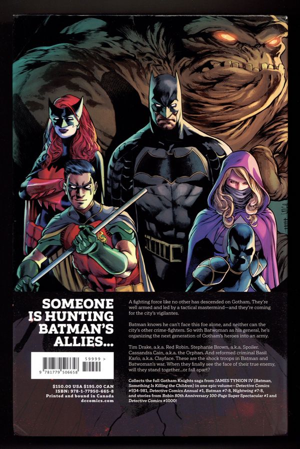 In this oversize hardcover collection, current Batman writer James Tynion IV is joined by an all-star team of artists as someone targets Batmans allies in Gotham City—young, untested heroes who model themselves after the Dark Knight but dont have his training or resources. With the help of Batwoman, the Caped Crusader recruits these young vigilantes, training them to be a team worthy of Gothams biggest threats.Red Robin, Spoiler, Orphan, and Clayface are the first heroes to get recruited. But can a team inspired by Batman and trained by Batwoman take on an entire anti-vigilante army? Or will Batmans vision of a team of Bat-heroes go down in flames?