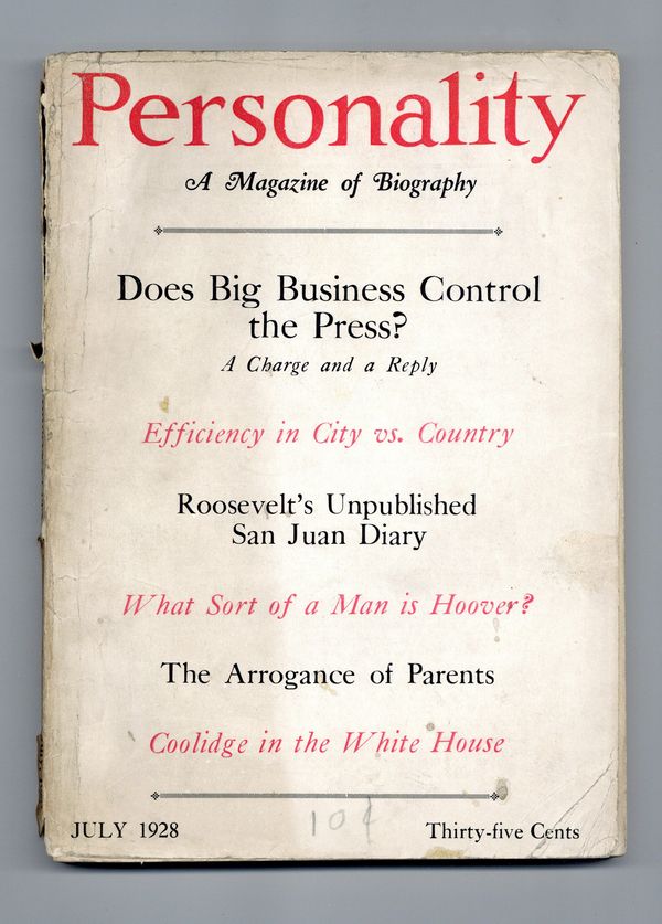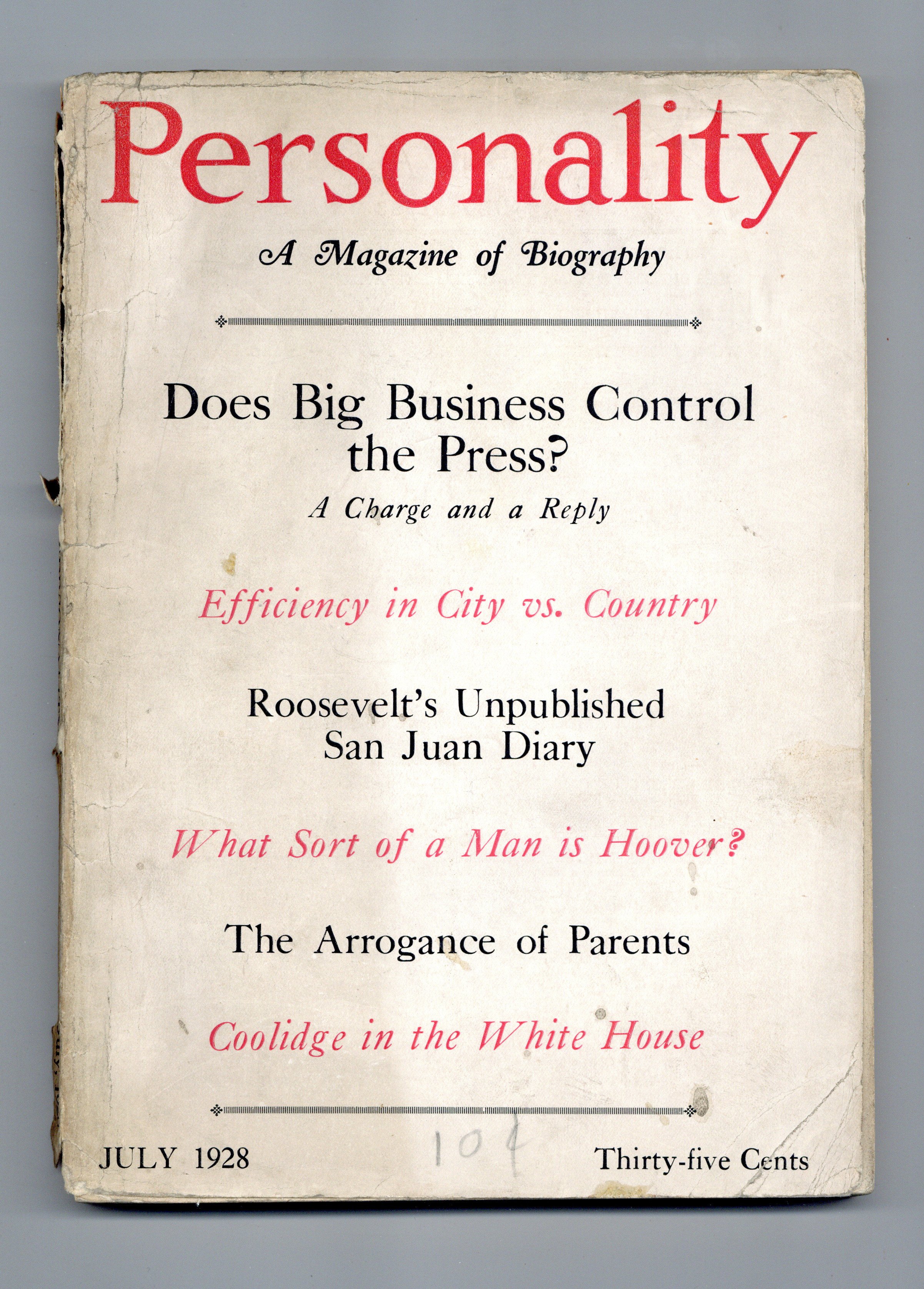 Short lived biography magazine. 7" x 10", 110 pages, B&W with full color frontispiece. Cover price $0.35.