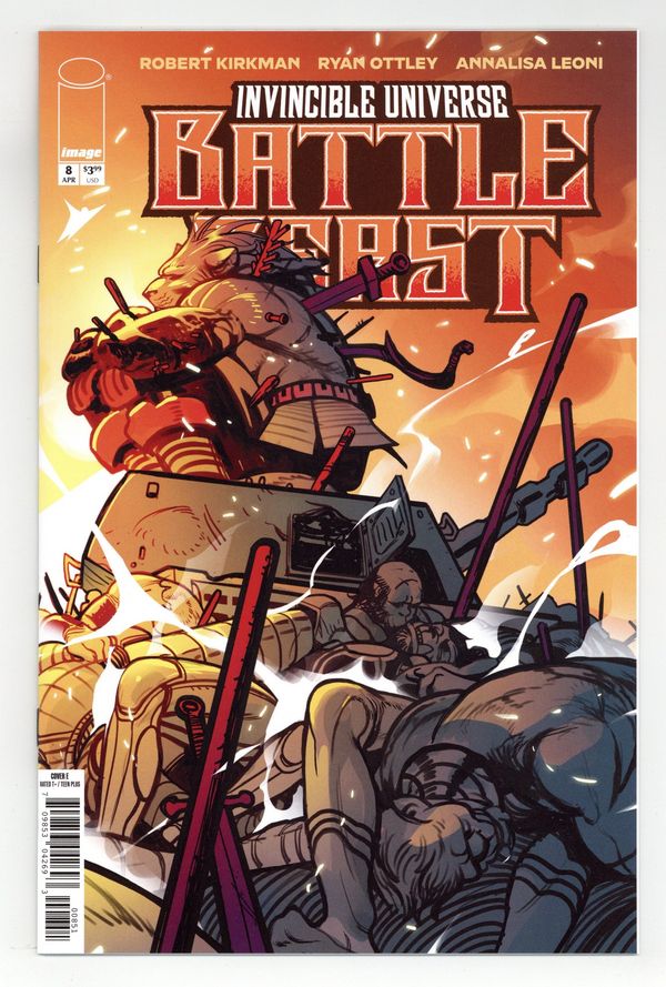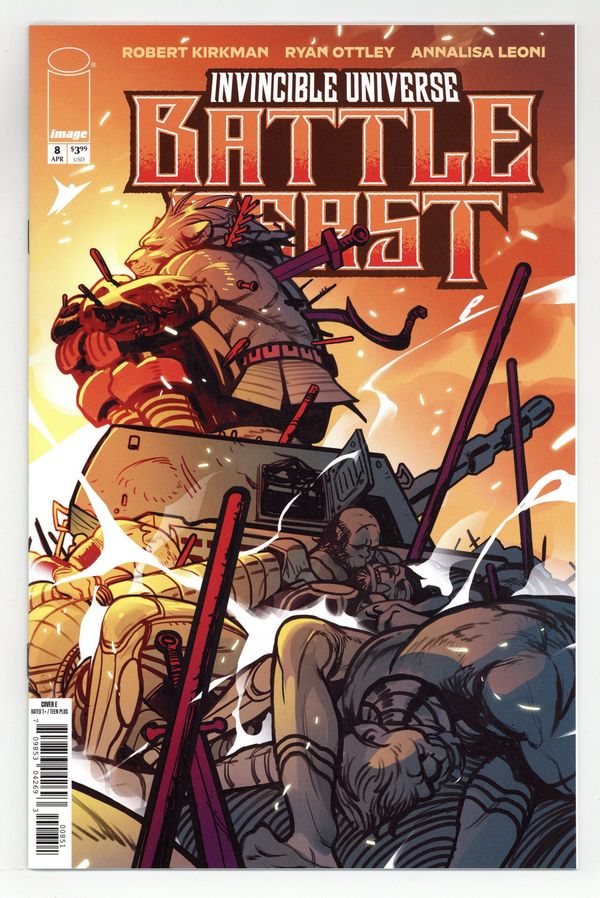 $20.00Limited 1 for 50 Retailer Incentive Variant Cover. (W) Robert Kirkman (A) Ryan Ottley, Annalisa Leoni (CA) Baldemar Rivas Battle Beast vs Colossus...AND Juggernaut? Juggernaut and Colossus want to celebrate their family reunion by killing Battle Beast...before he gets to kill them. Plus, what is the Viltrum Empire planning? 24 pages, T+, full color Cover price $3.99.