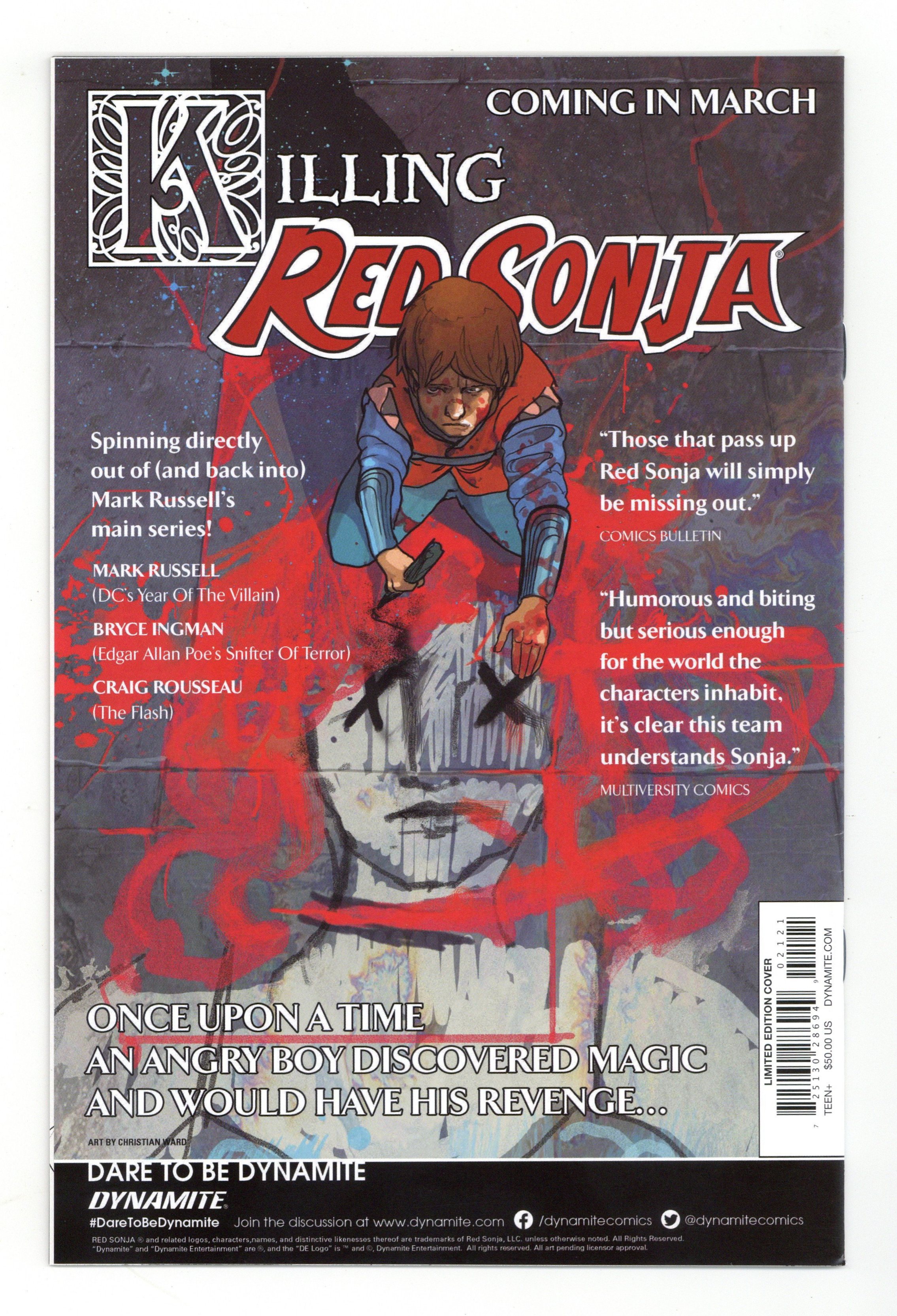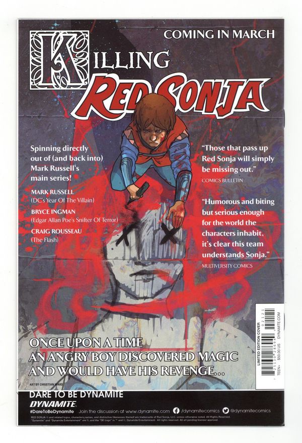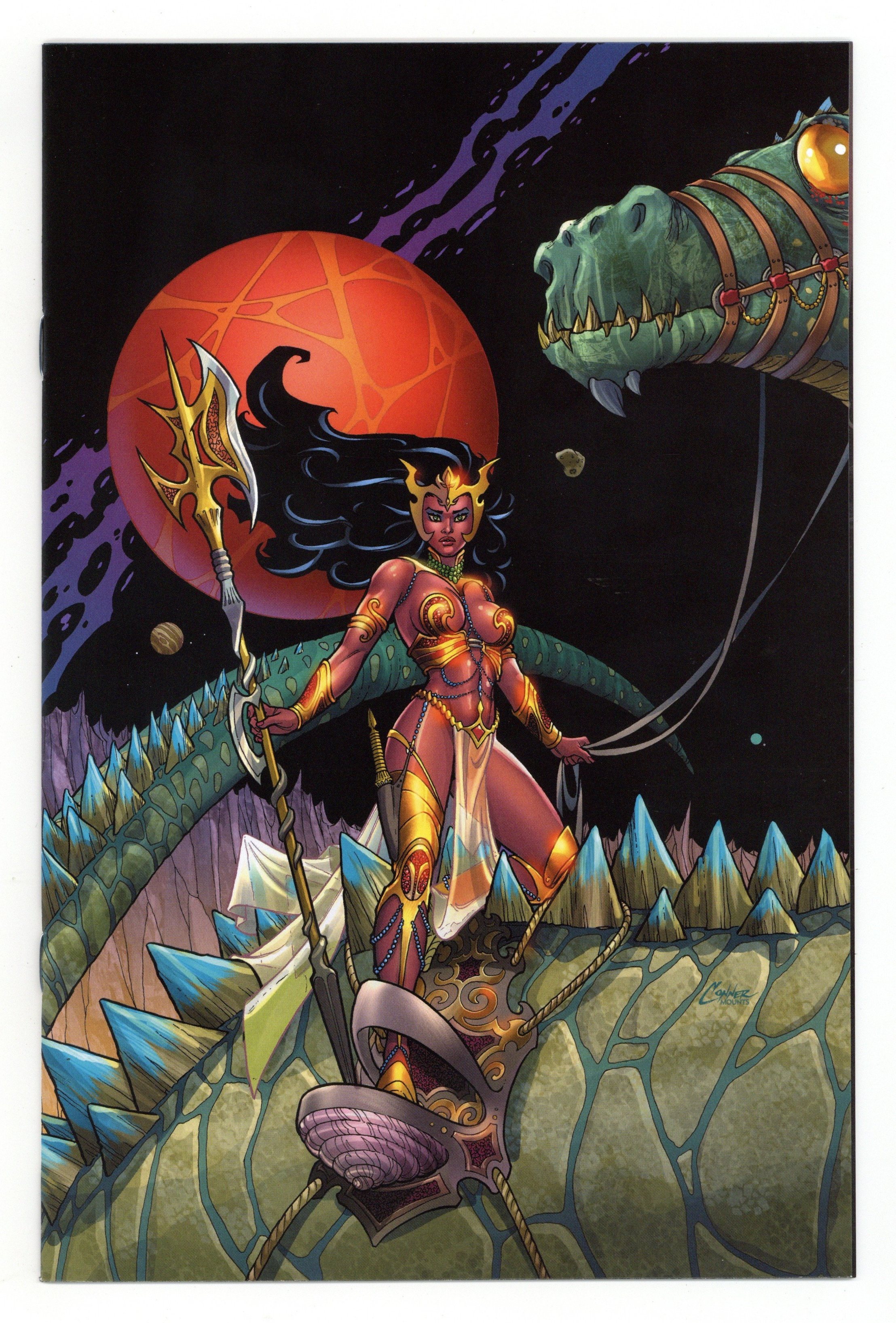 Published Jan 2020 by Dynamite Entertainment.$38.00Limited Edition Virgin Cover by Amanda Conner. Written by Dan Abnett. Art by Vasco Georgiev. The epic reimagining of the world of Barsoom continues, from the minds of DAN ABNETT (Guardians of The Galaxy) and VASCO GEORGIEV (Xena Warrior Princess). The once-powerful Dejah Thoris is an outcast, her dynasty has been practically wiped out. Yet her family survives and are determined to uncover the mysterious reasons for Barsoom's worldwide dangers. But the powerful Jeddak would rather Dejah's entire family be…removed… 32 pages, full color. Rated T+ Cover price $50.00.