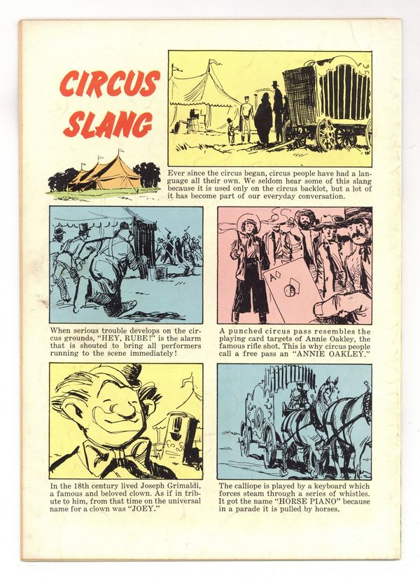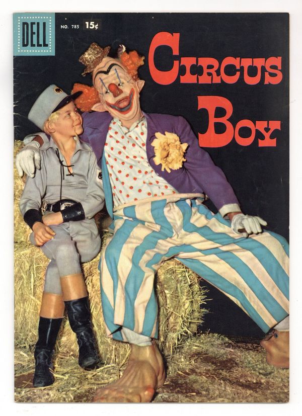 $90.0015c Test Market Cover Price Edition. Photo Cover features Corky (Mickey Braddock [Mickey Dolenz, later of the musical group The Monkees]) and Joey the Clown (Noah Beery, Jr.). Stories by unknown. Art by Dan Spiegle. Featuring the tales "The Great Gambino" and "Counterfeit Clown"! Based on the 'Circus Boy' TV series. 36 pages, full color. Cover price $0.15.