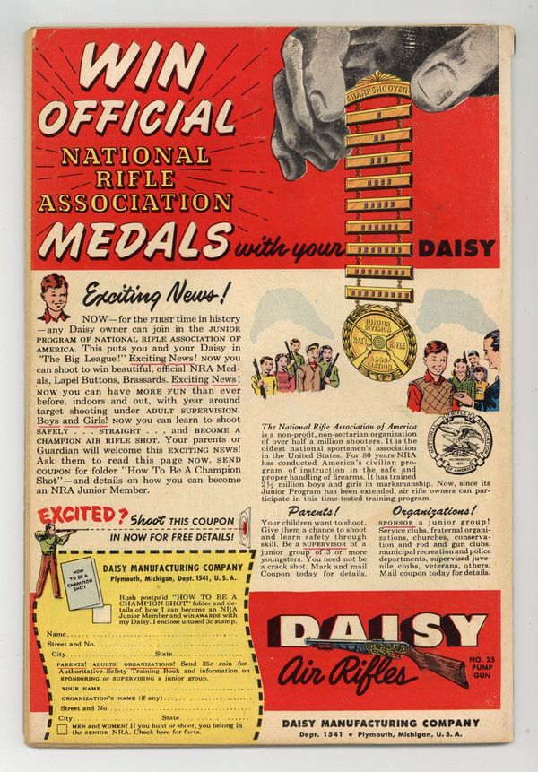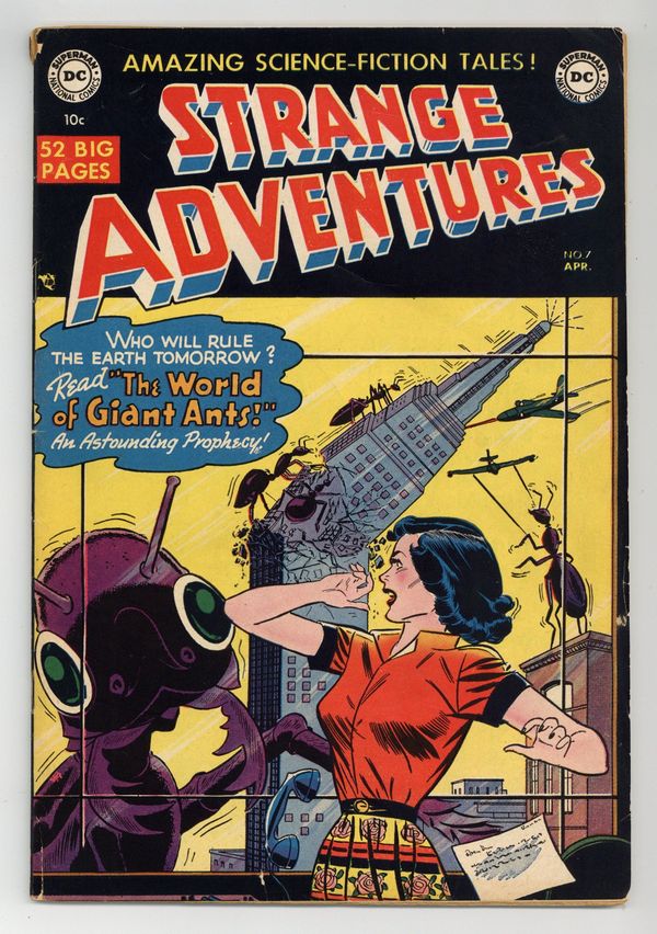 Written by Gardner Fox Art by Bob Oksner and Bernard Sachs. Cover by Bob Oksner and Bernard Sachs. A scientist discovers that ants have a plan to take over the world. Written by Manly Wade Wellman. Art by Jim Mooney and Ray Burnley. Daniel Parr, Crime Specialist XC-112, pursues the criminal Brawne through Jupiter City. Written by Irwin Hasen. Art by Irwin Hasen. Robbie the Robot takes over the professor's responsibilities. Written by Mann Rubin (as Manny Rubin). Art by Gil Kane and John Giunta. The actions of movie makers in the present and in the future coincide in space and cause a rift in time. Art by Carmine Infantino and Frank Giacoia. Ad for Mystery in Space #1. Written by Henry Boltinoff. Art by Henry Boltinoff. Professor Eureka struggles with making coffee. Written by Edmond Hamilton. Art by Carmine Infantino and Joe Giella. Kris follows a series of markers to discover the fate of his parents. Written by Jack Schiff. Art by Win Mortimer. Public service announcement. Superman defends freedom of expression and the United Nations. 52 Pages, Full Color. Cover price $0.10.