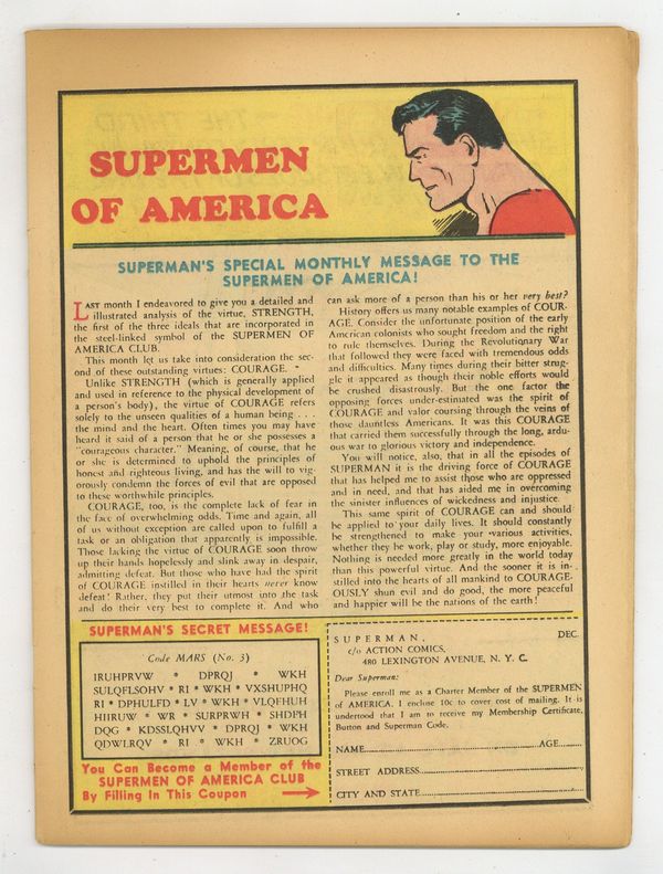 Start Superman covers - Cover art by Joe Shuster. Superman story (in which Clark Kent is credited as a Daily Star reporter), script by Jerry Siegel, art Joe Shuster. Pep Morgan story, script by Gardner F. Fox, art by Fred Guardineer (as Gene Baxter). Chuck Dawson story, art by Homer Fleming. Clip Carson story, script by Bill Finger, art by Bob Kane. The Zombies starring Tex Thomson, art by Bernard Baily. Three Aces story, art by Bert Christman (as Christopher). The Gorilla King starring Zatara Master Magician, script by Gardner F. Fox, art by Fred Guardineer. 68 Pages, Full Color. $.10 Full page ad for 1939 New York World's Fair. Cover price $0.10.