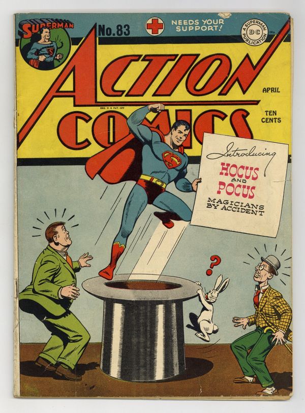 Cover pencils by Joe Shuster. Hocus and Pocus...Magicians by Accident! (intro) starring Superman, script by Jerry Siegel, art by Joe Shuster. Custom Tailored Crime starring Hayfoot Henry, art by Thurston Harper. Wild Horses starring Congo Bill, art by John Daly. A Fortune for a Fossil starring The Vigilante, script by Joe Samachson, pencils by Mort Meskin (as Mort Morton Jr.). The Innocent Thief starring Zatara, art by William F. White. 52 Pages, Full Color. $.10 Cover price $0.10.