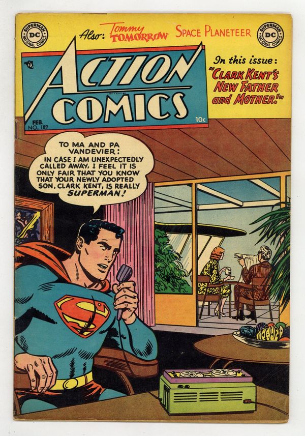 Cover art by Win Mortimer. Clark Kent's New Mother and Father starring Superman, script by Edmond Hamilton, pencils by Curt Swan, inks by Ray Burnley. The Mail-Order Hunter starring Congo Bill, script by Jack Miller, art by Ed Smalle. The Forbidden World starring Tommy Tomorrow, art by Jim Mooney. The One-Armed Bandit starring Vigilante, art by Howard Sherman. 44 Pages, Full Color. $.10 Cover price $0.10.