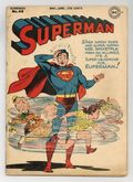 Tags: Superman$175.00- 3/4" Spine split from top. Tape along spine interior. 3/4" tear from bottom. Glue. Water damage.