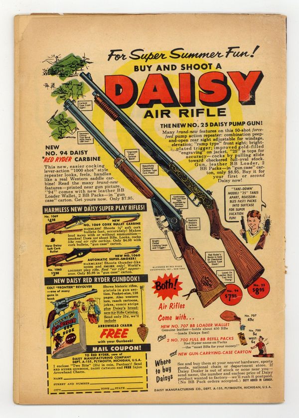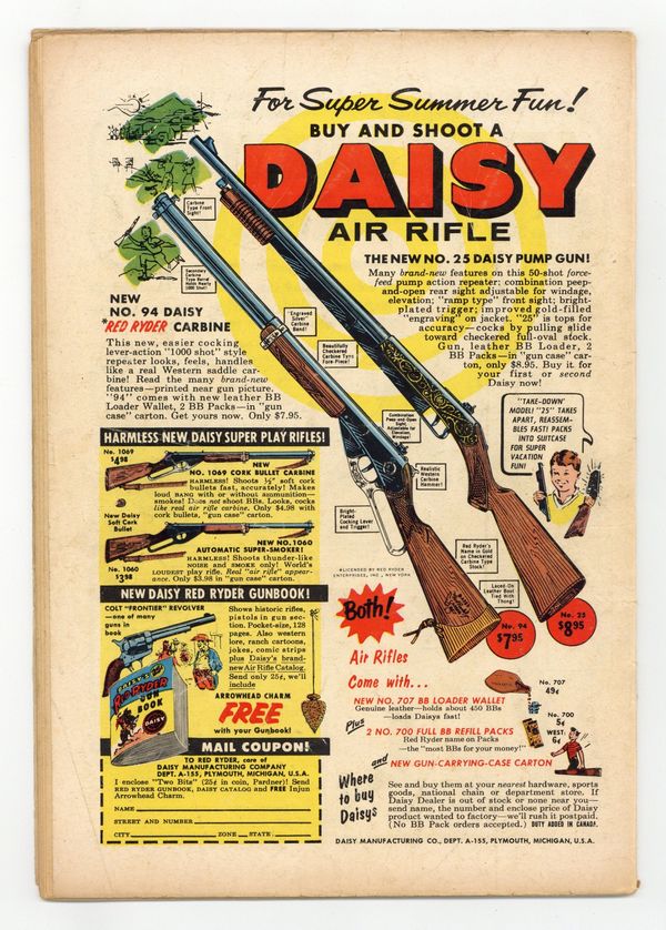 Tags: Superman$85.00Cover art by Al Plastino. Superman's Secret Life starring Superman, Rags Stephens, and Harry Chadwick, script by France Herron, art by Al Plastino. Clark Kent, Outlaw, script by Bill Finger, pencils by Wayne Boring, inks by Stan Kaye; Superman battles The Big Guy. Club For Adventurers text story by Joe Mallon. The Amazing Superman Newsreel, art by Al Plastino. 36 Pages, Full Color. Cover price $0.10.