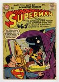 Tags: Superman$32.00- 3 1/2" cumulative spine split. Cover oxidation. Water damage.