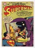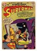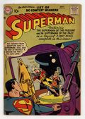 Tags: Superman$75.001st full-issue (3-part) Superman story. Cover pencils by Wayne Boring, inks by Stan Kaye. The Superman of the Past (Part 1), script by Bill Finger, pencils by Wayne Boring, inks by Stan Kaye; After disposing of a Kryptonite meteor, Superman finds a box containing a mysterious helmet which contains "mind-tapes" of an adventure Jor-El had before Krypton blew up. The Secret of the Towers (Part 2), script by Bill Finger, pencils by Wayne Boring, inks by Stan Kaye. DC Slogan contest winners. Hy Wire humor page by Henry Boltinoff. The Superman of the Present (Part 3). A Date With Effie public service announcement, script by Jack Schiff, pencils by Curt Swan, inks by Stan Kaye. 36 Pages, Full Color. Cover price $0.10.