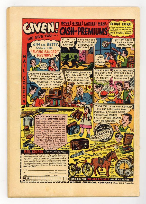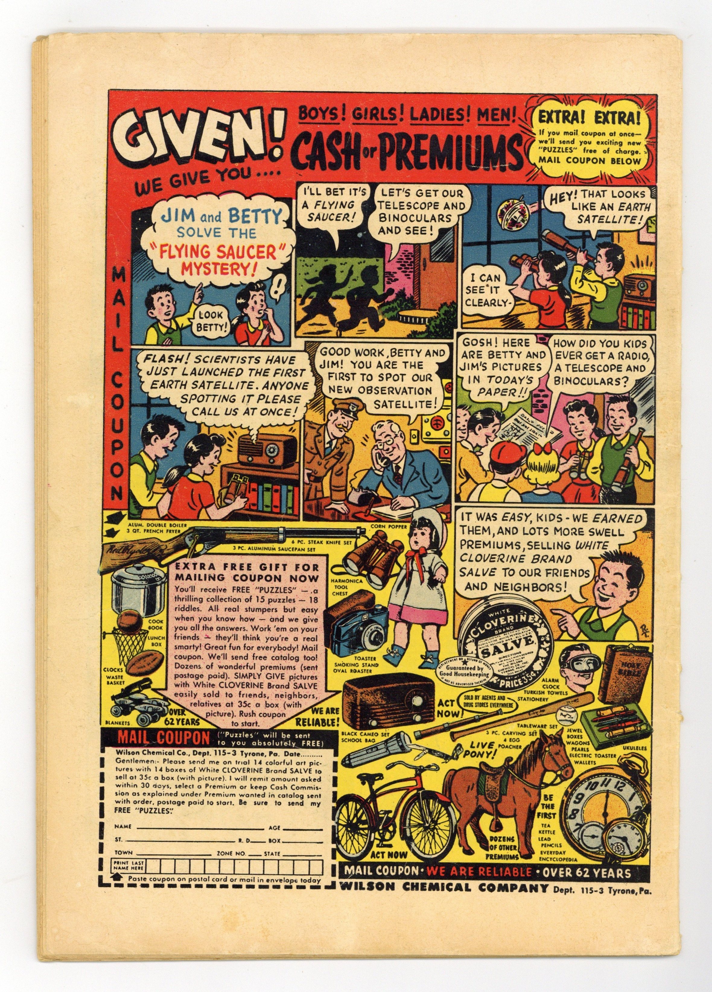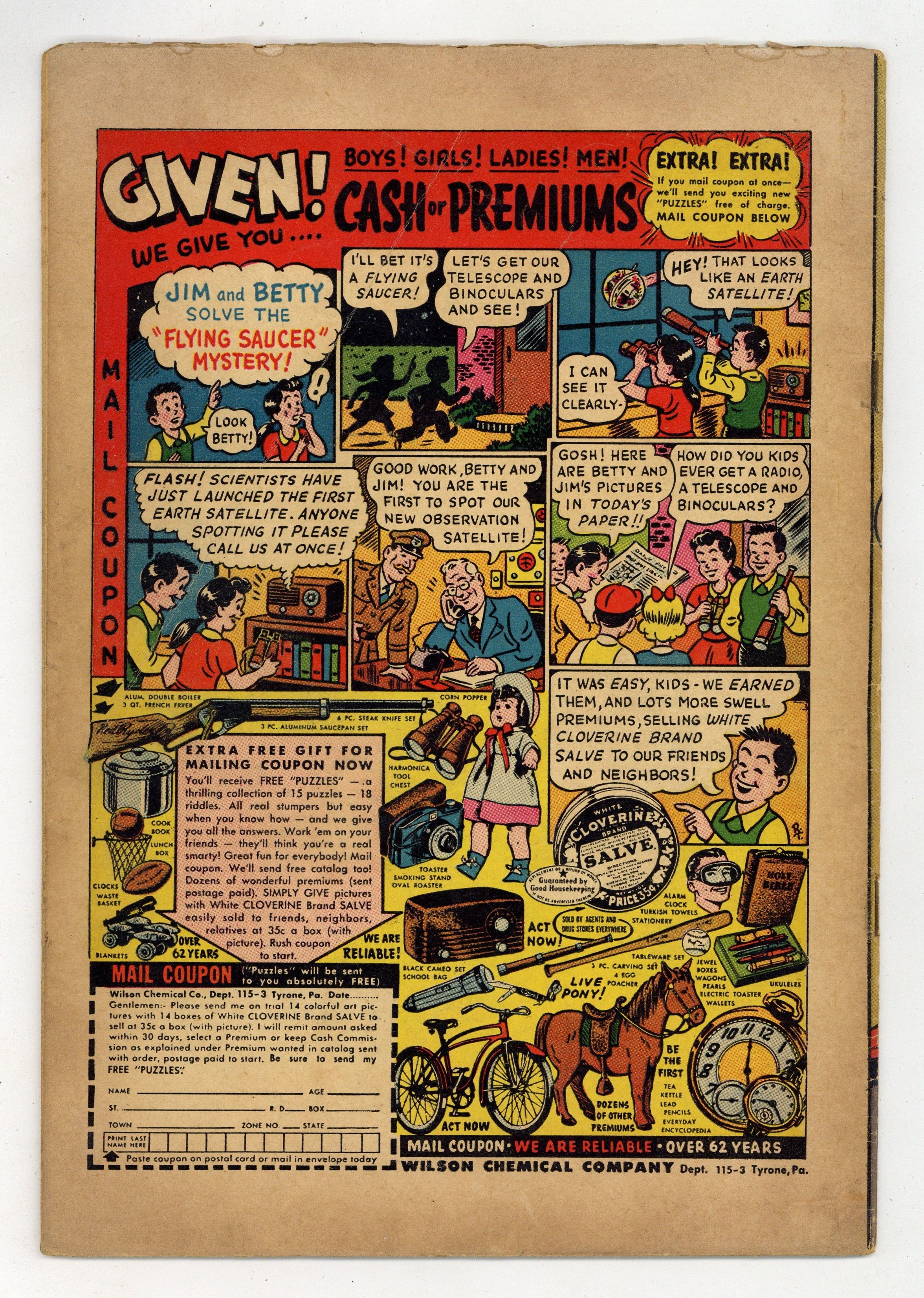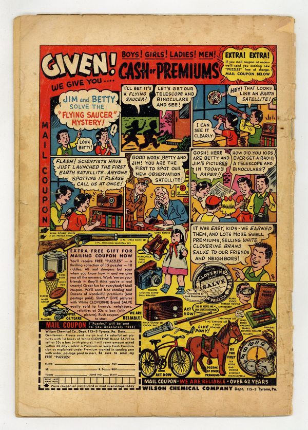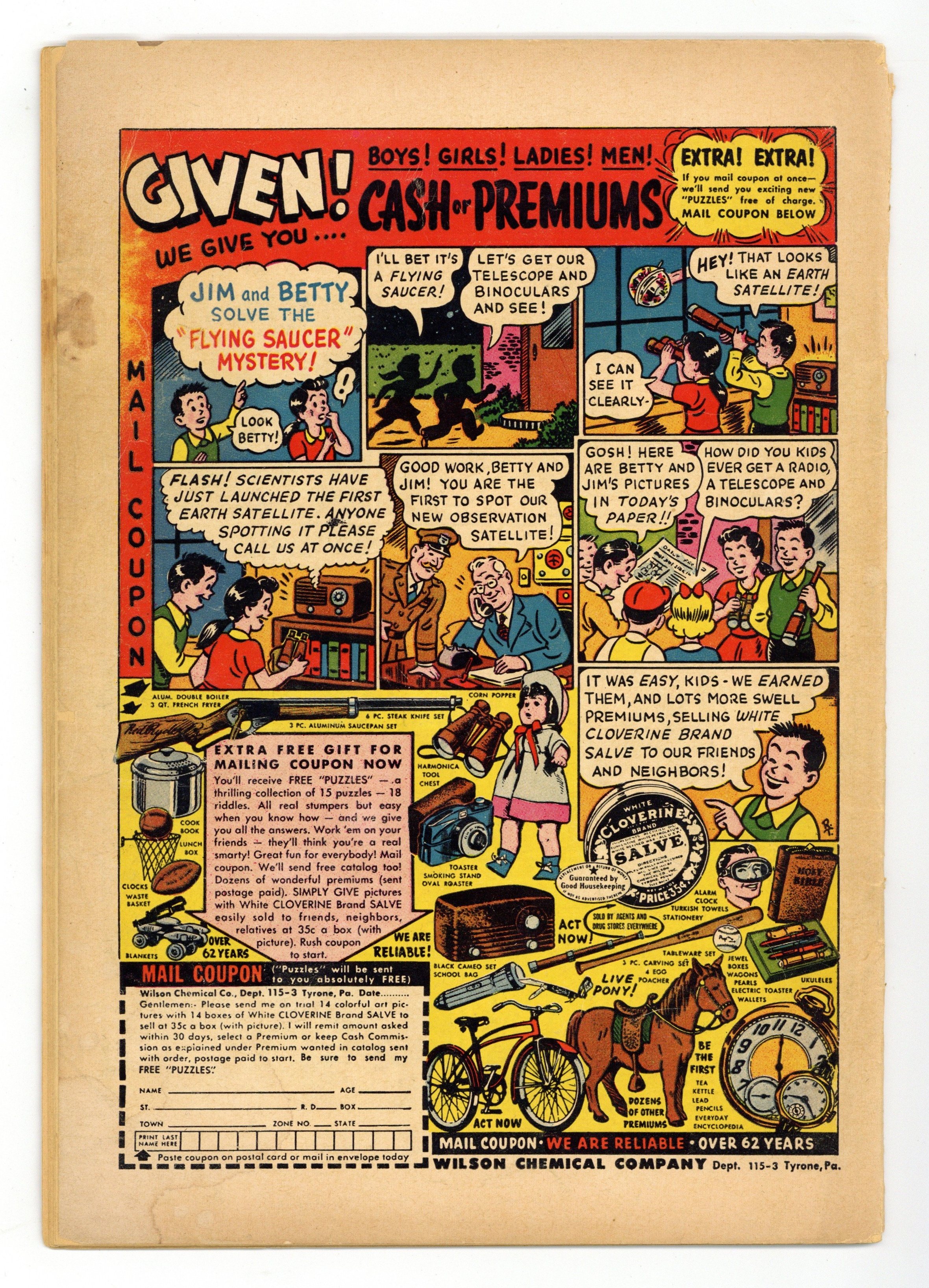 1st full-issue (3-part) Superman story. Cover pencils by Wayne Boring, inks by Stan Kaye. The Superman of the Past (Part 1), script by Bill Finger, pencils by Wayne Boring, inks by Stan Kaye; After disposing of a Kryptonite meteor, Superman finds a box containing a mysterious helmet which contains "mind-tapes" of an adventure Jor-El had before Krypton blew up. The Secret of the Towers (Part 2), script by Bill Finger, pencils by Wayne Boring, inks by Stan Kaye. DC Slogan contest winners. Hy Wire humor page by Henry Boltinoff. The Superman of the Present (Part 3). A Date With Effie public service announcement, script by Jack Schiff, pencils by Curt Swan, inks by Stan Kaye. 36 Pages, Full Color. Cover price $0.10.