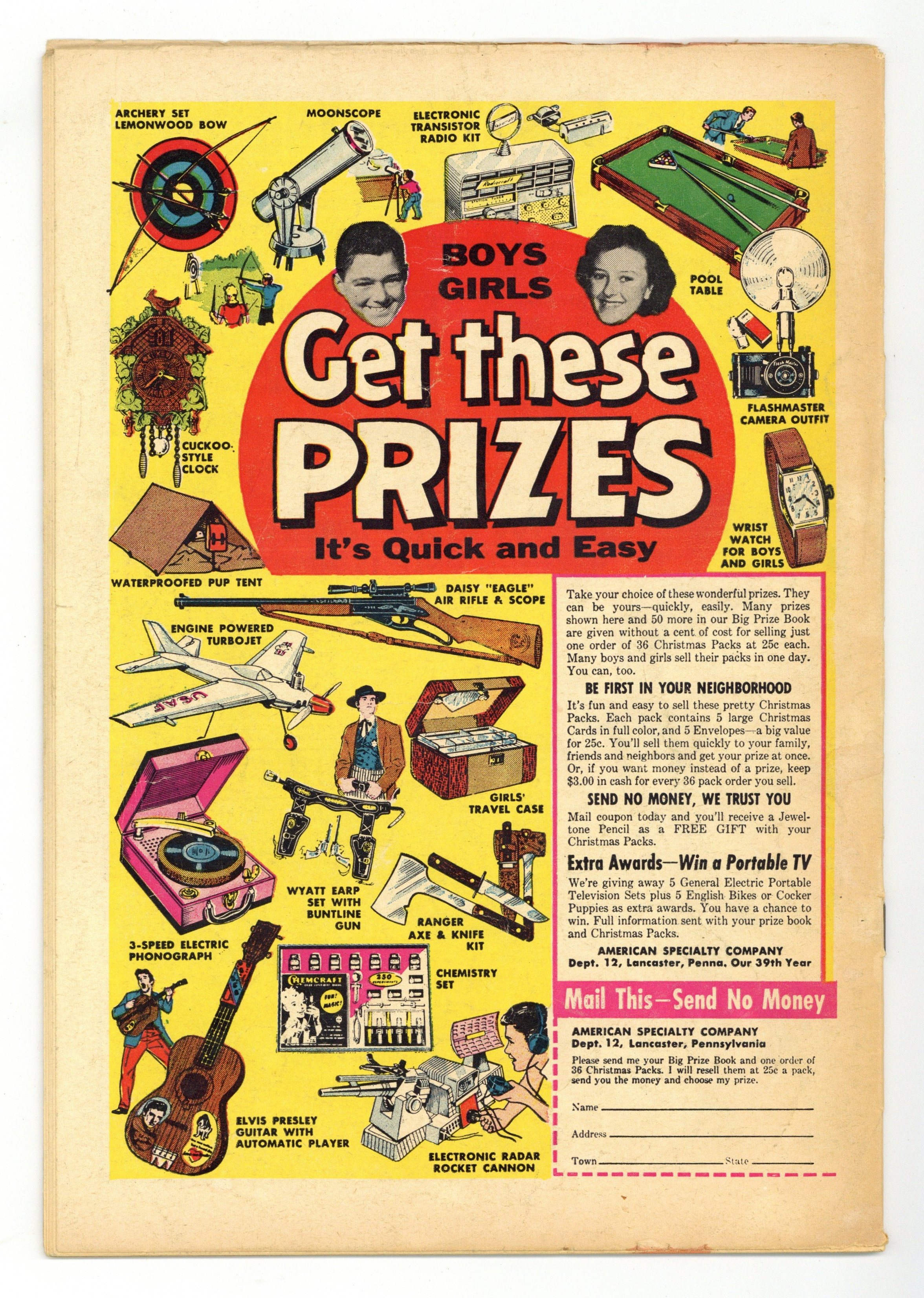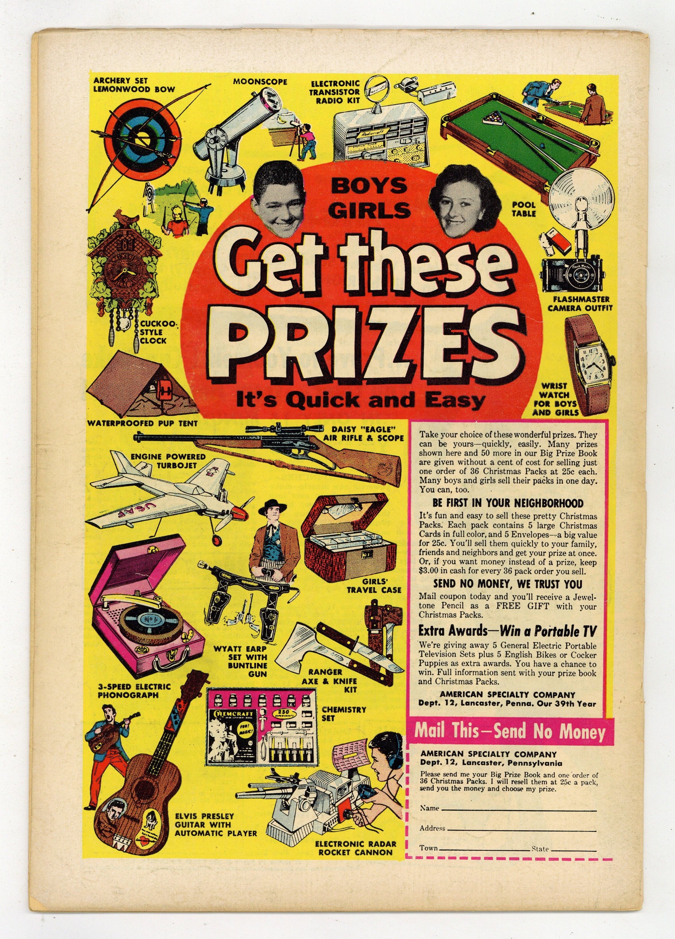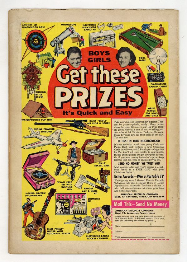 Cover pencils by Curt Swan, inks by Stan Kaye. Clark Kent, Man of Mystery starring Superman, script by Otto Binder, pencils by Wayne Boring, inks by Stan Kaye. The Secret of Fort Superman starring Superman and Lex Luthor, script by Otto Binder, pencils by Wayne Boring, inks by Stan Kaye. The Man With the Zero Eyes starring Superman and Rex Chalmers, art by Al Plastino; Superman's heat vision (called super-vision here) is cold instead of hot. 36 Pages, Full Color. Cover price $0.10.
