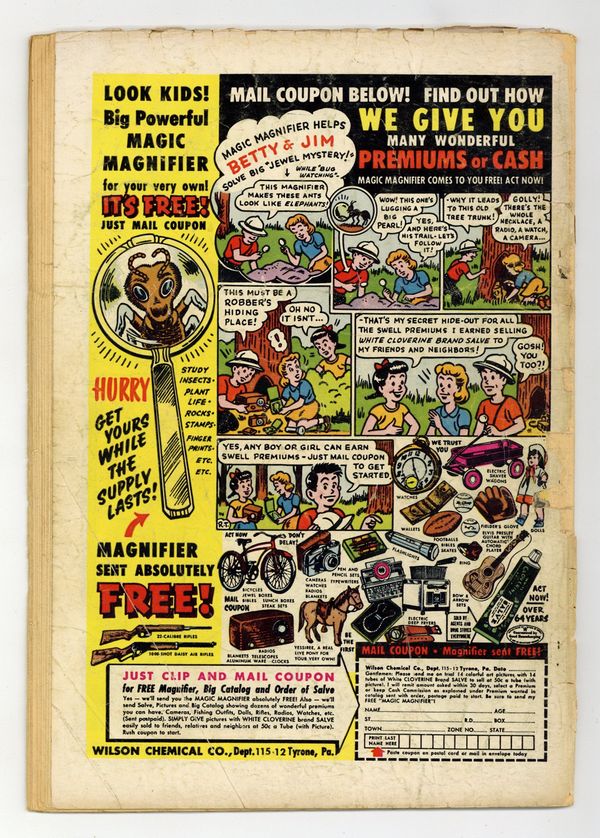 Tags: Superman$27.00- 5" cumulative spine split. Large piece of back cover missing. Centerfold detached. Cover oxidation. Water spotting.