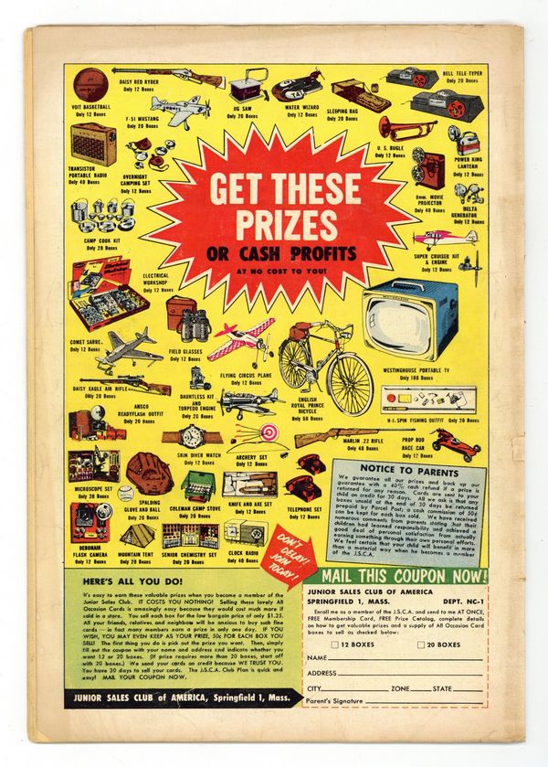 Cover pencils by Curt Swan, inks by Stan Kaye. "The Super-Gorilla from Krypton," script by Otto Binder, pencils by Wayne Boring, inks by Stan Kaye; Jimmy summons Superman to Africa with his signal-watch when he encounters a gorilla with super-powers; Superman deduces that the giant ape is from Krypton, and later it sacrifices itself to save Superman from Green Kryptonite, revealing that it was really a Kryptonian human accidentally transformed into a gorilla. Ad for Superman's Girl Friend Lois Lane. Supermen of America ad. One-page Ollie story by Henry Boltinoff. "Marooned in the Fourth Dimension," script by Otto Binder, art by Jim Mooney; Tommy Tomorrow checks out Prof. Jaxon's dimension cabinet, a gateway to the 4th dimension; Since Tommy suspects the cabinet is a hoax, he volunteers to test the device and is sent to the 4th dimension. One-page Casey the Cop story by Henry Boltinoff. "The Tenderfoot Hunter" starring Congo Bill, art by Howard Sherman. 36 Pages, Full Color. $.10 Cover price $0.10.