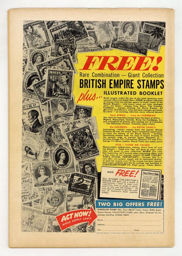 Tags: Superman$132.00Cover pencils by Curt Swan, inks by Stan Kaye. "The Secret of the Superman Sphinx," script by Otto Binder, pencils by Wayne Boring, inks by Stan Kaye; Lois discovers a Clark Kent robot in a closet at the Daily Planet, and a strange Sphinx with a Superman head and kryptonite vision goes into orbit around the Earth. One-page Ollie story by Henry Boltinoff. "The Trial of Tommy Tomorrow," script by Otto Binder, art by Jim Mooney; Tommy is on trial for the murder of Brent Wood. One-page Animal Wonderland cartoon by Martin Naydel. "Trapped in the Insect World" starring Congo Bill, art by Howard Sherman. 36 Pages, Full Color. $.10 Cover price $0.10.