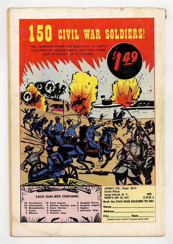 Starts Dec 8 Cover pencils by Curt Swan, inks by Stan Kaye. "The Kryptonite Man!", script by Otto Binder, art by Al Plastino; Luthor takes a liquid kryptonite serum which makes it impossible for Superman to get near him; Superman makes a lead suit to protect himself, but Luthor has discovered a way to turn lead into glass. -page Casey the Cop story by Henry Boltinoff. Supermen of America ad. "The Man-Ape's Mountain Mission," script by Robert Bernstein, art by Howard Sherman; As Congorilla goes on a dangerous mission to rescue some plane crash survivors, the body of Congo Bill is locked in a shack which is about to be blown up. One-page Varsity Vic story by Henry Boltinoff. "The Gambling Asteroid" starring Tommy Tomorrow, script by Otto Binder, art by Jim Mooney. One-page Private Pete story by Henry Boltinoff. 36 Pages, Full Color. $.10 Cover price $0.10.