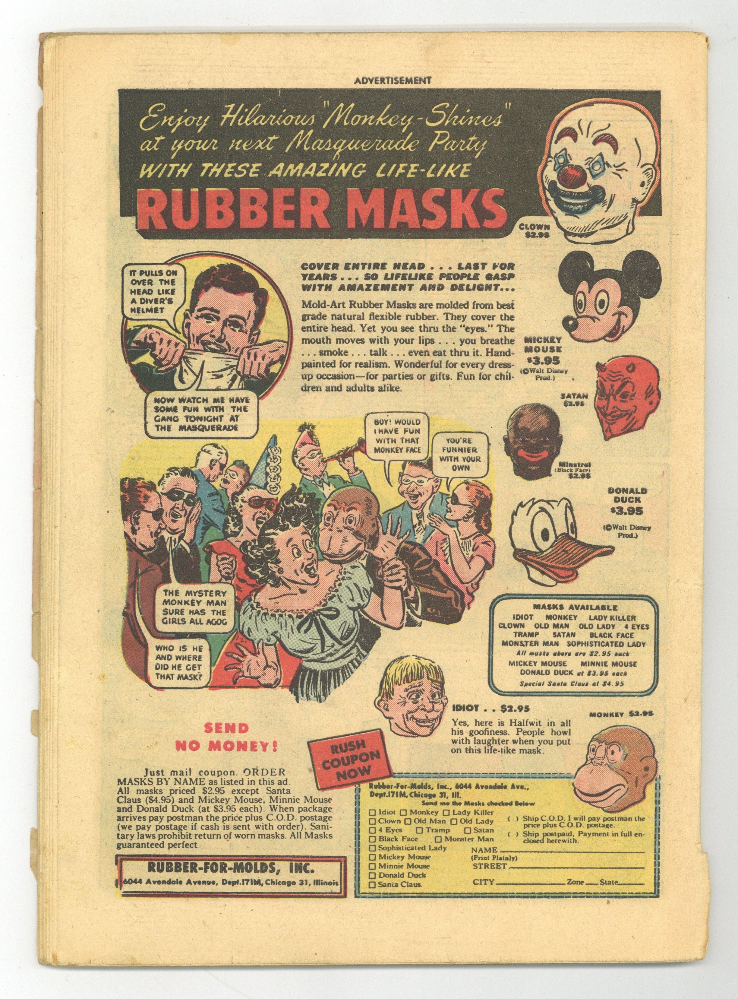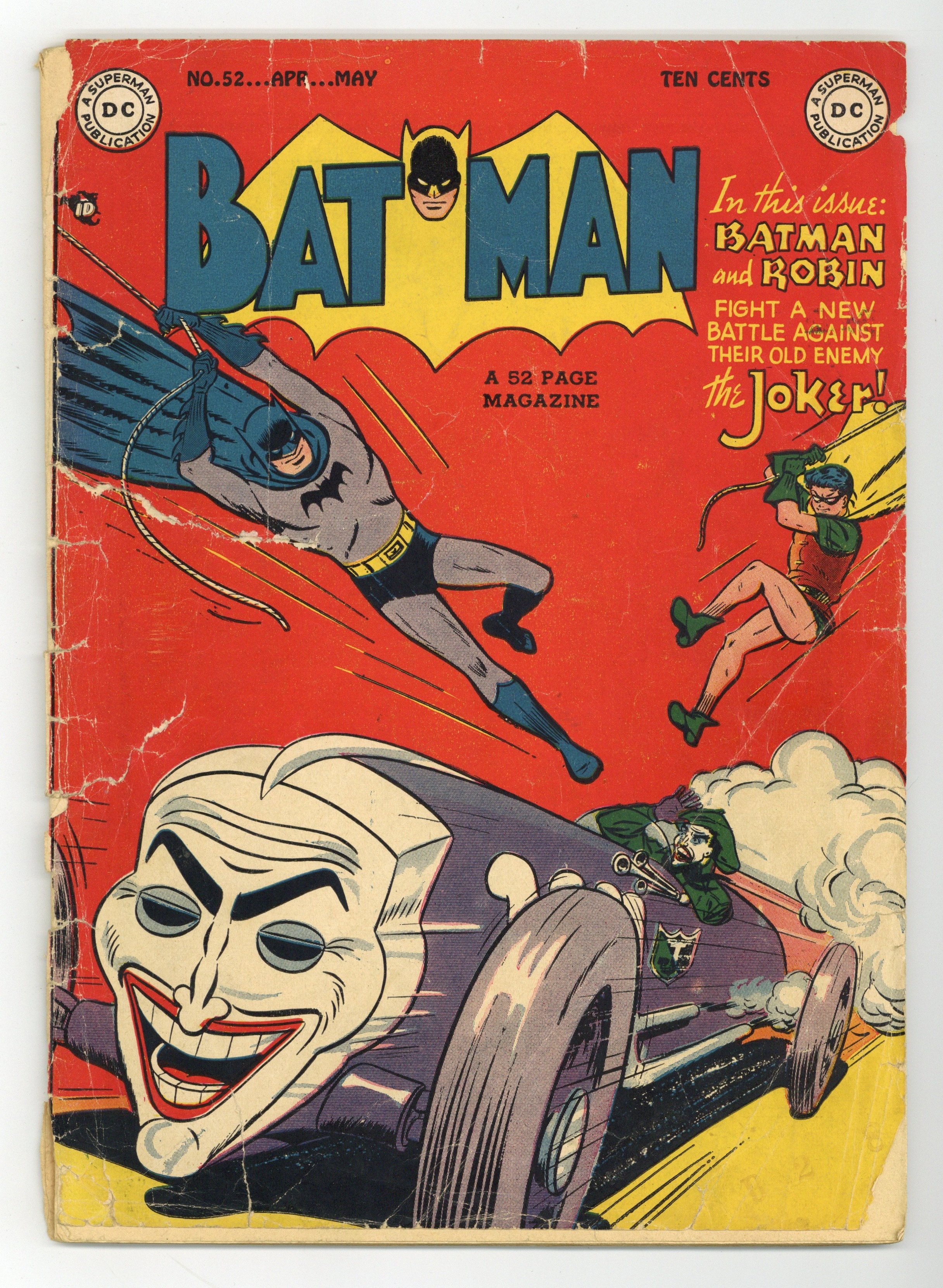 Cover by Win Mortimer. The Man With the Automatic Brain!:, script by Bill Finger, pencils by Bob Kane (Batman and Robin figures only) and Lew Sayre Schwartz, inks by Charles Paris; The Thinker, using a machine he created, pretends to discover Batmans secret identity; To prevent The Thinker from achieving his goal, Bruce stages his death with Alfred's help; Vicki Vale takes a picture of Alfred tossing a dummy of Bruce into the ocean; Alfred is taken to prison for the murder of Wayne. Batman and the Vikings!, pencils by Bob Kane, inks by Charles Paris; When Bruce and Dick visit the Gotham City museum, they note an image of a Viking that looks like Bruce Wayne.....and who is labeled a coward, so they visit Carter Nichols to go back in time to discover the truth. Untitled two-page Peg story by Henry Boltinoff. Fearless Wise Man text story, art by Raymond Perry. Cartoon Flips Starring Batman activity page by Martin Naydel. The Happy Victims!, script by Bill Finger, pencils by Bob Kane (Batman and Robin figures only) and Lew Sayre Schwartz, inks by Charles Paris; The Joker blackmails people into setting up fake robberies; The robberies stop when he tries to blackmail Bruce Wayne. 52 Pages, Full Color. Cover price $0.10.