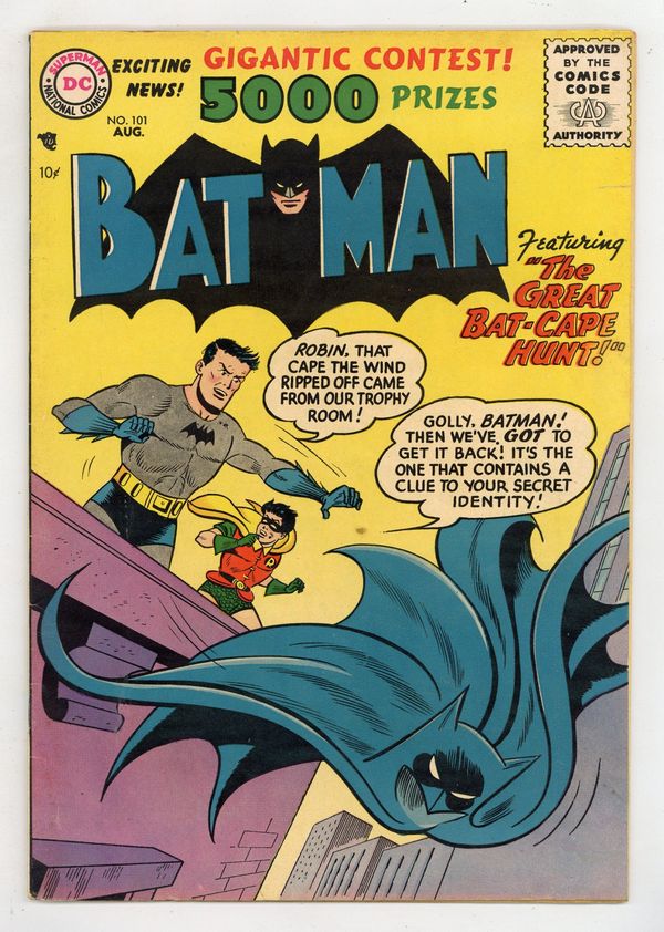 Cover by Sheldon Moldoff. "The Vanished Batman," script by Edmond Hamilton, pencils by Sheldon Moldoff (as Bob Kane), inks by Stan Kaye; Gotham City is shocked to see Robin drive up to Police HQ one day in a Robinmobile, but he refuses to comment on the disappearance of his long-time partner in crime-fighting. The Case of the Careless Camper! public service announcement with Peter Porkchops. "The Six Strangest Sleuths," script by Edmond Hamilton, pencils by Sheldon Moldoff, inks by Charles Paris; When crooks rob the box office at a Vaudeville performers performance, Batman enlists the aid of six former vaudevillians to help track them down. One-page Casey the Cop story by Henry Boltinoff. Two-Wheeled Lawmen article by Jack Miller. Half-page Little Orvil story. "The Great Bat-Cape Hunt!", script by Bill Finger, pencils by Sheldon Moldoff, inks by Charles Paris; Batman loses his cape and cowl on a windy day in Gotham City, but, realizing it has his secret identity sewn into it, he makes every effort to retrieve it before crooks do. 36 Pages, Full Color. Cover price $0.10.