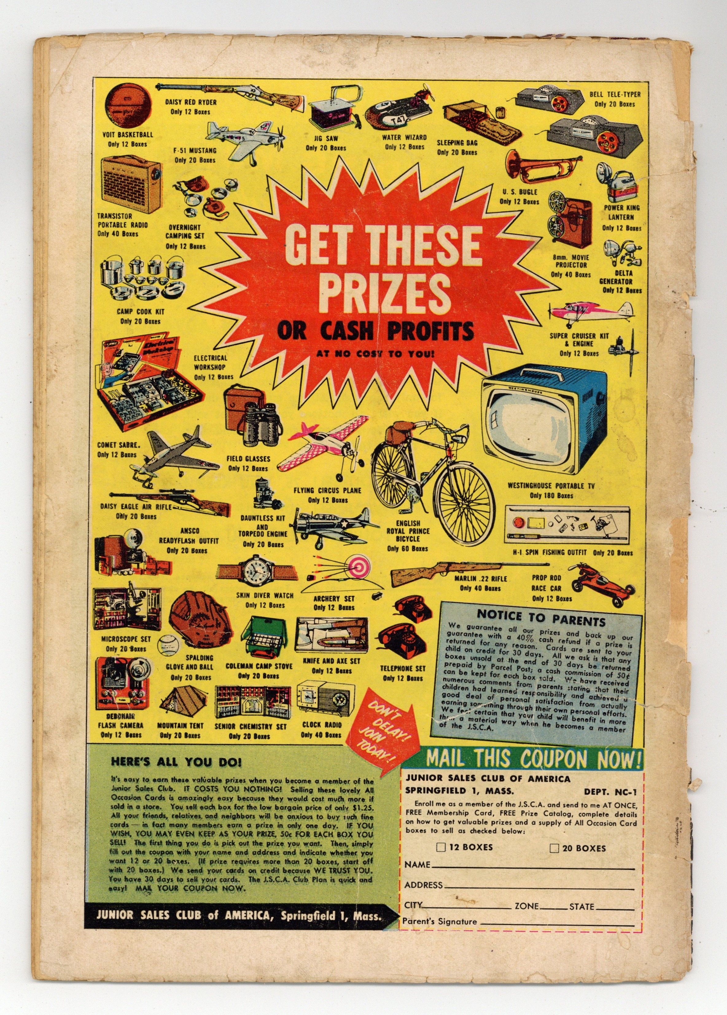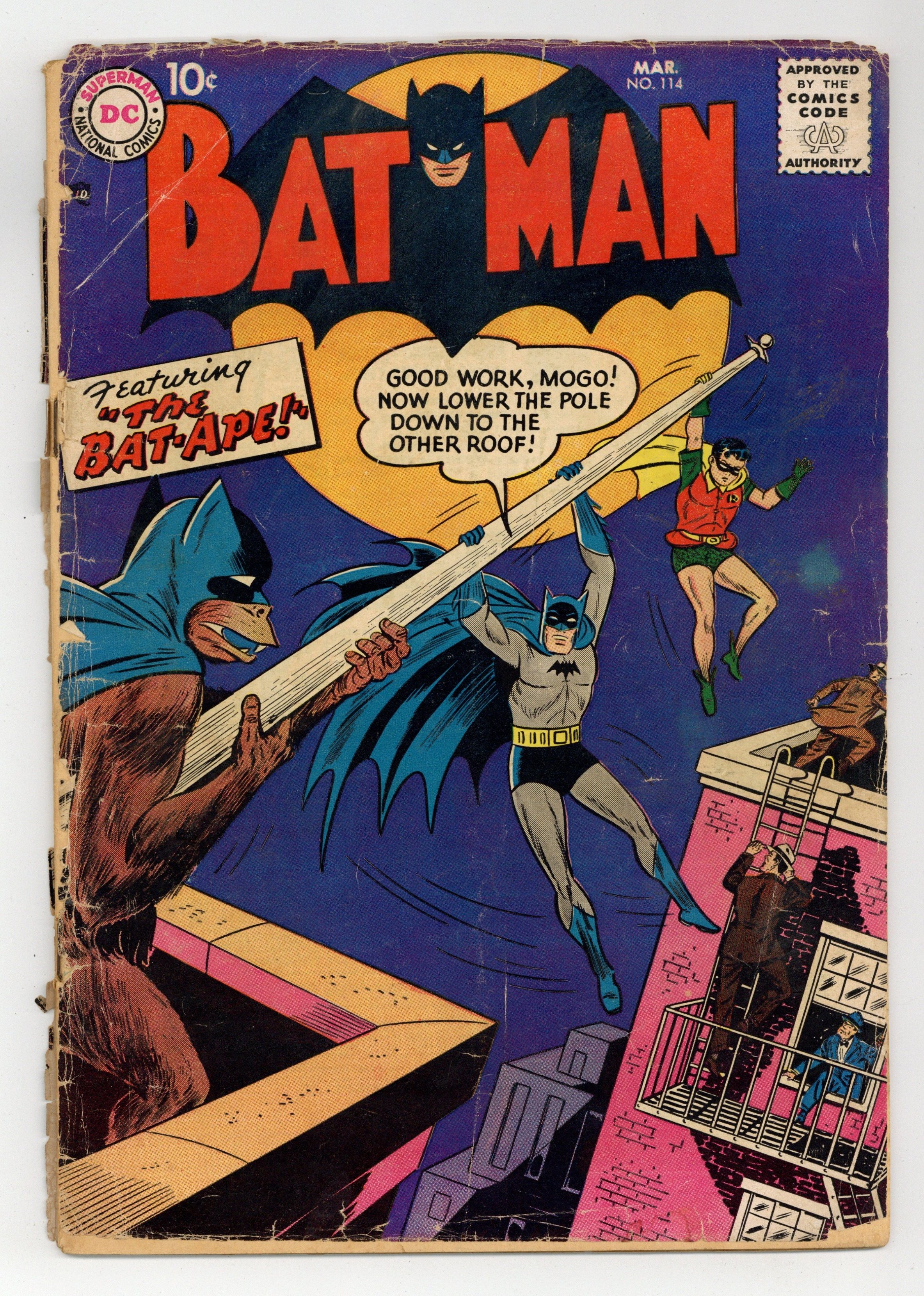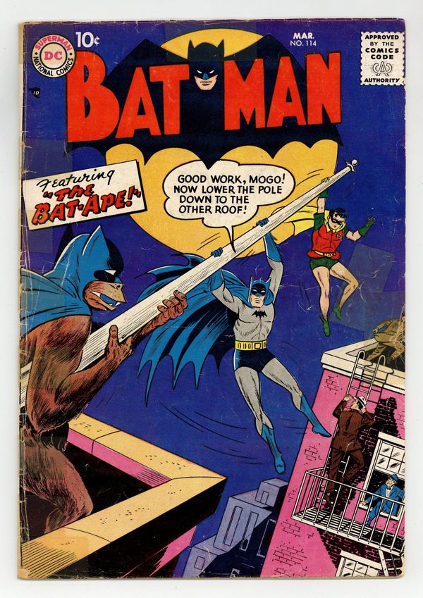 Cover by Sheldon Moldoff. "The Secret of Mechanical City," script by Bill Finger, pencils by Dick Sprang, inks by Charles Paris; The Caped Crusaders and Professor race one another to Mechanical City to retrieve a stolen secret formula on microfilm. One-page Warden Willis story by Henry Boltinoff. Do You Know What's Behind a Law? public service announcement, art by Bob Brown. "The Mirage Maker," pencils by Sheldon Moldoff, inks by Charles Paris; The Caped Crusaders battle a wily foe who can create illusions, which stumps Batman until he finds a way to combat these mirages with radar. One-page Casey the Cop story by Henry Boltinoff. "The Invisible Patrolman" text story. "The Bat-Ape," pencils by Sheldon Moldoff, inks by Charles Paris; An animal trainer at a circus is arrested for robbing the box office since an ape provided a distraction; However, Batman seeks to prove the man's innocence, using the ape as a cowled assistant. 36 Pages, Full Color. Cover price $0.10.