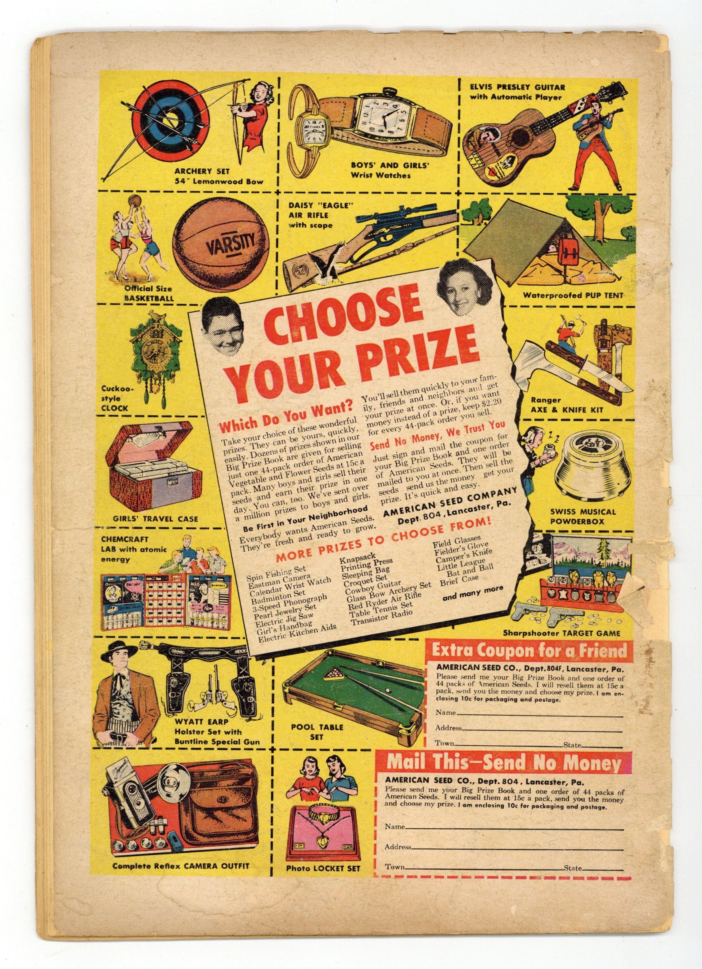 Cover by Sheldon Moldoff. "The Million-Dollar Clues," script by Bill Finger, pencils by Sheldon Moldoff, inks by Stan Kaye; Batman is given a clue to the whereabouts of stolen gems from a dying criminal, who warns the Caped Crusader that some of his henchmen are also seeking the loot. One-page Casey the Cop story by Henry Boltinoff. "Batman for Hire," pencils by Sheldon Moldoff, inks by Charles Paris; On the pretense of needing money for Robin's college education, Batman opens a private detective agency, and is hired, unsuspectedly, by a bank robber the Caped Crusader is hoping to nail for his crimes. The Secret of the Happy Pig! public service announcement with Peter Porkchops, art by Rube Grossman. The Sentry Who Never Sleeps article. "Batman in the Bottle," script by Bill Finger, pencils by Sheldon Moldoff, inks by Charles Paris; Sent back in time to discover the origins of a giant sling used by the Zoto civilization, Batman helps those people combat a race of giants. 36 Pages, Full Color. Cover price $0.10.