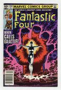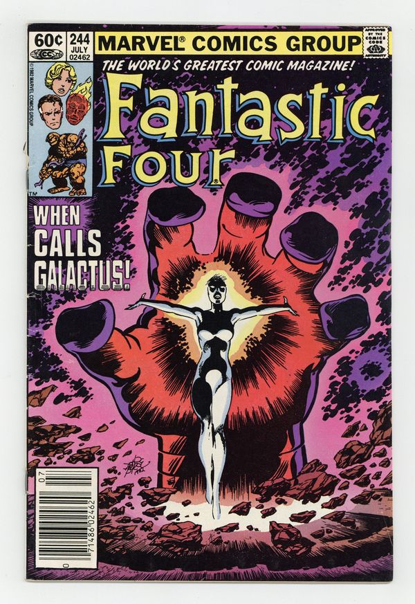 Direct Edition. "Beginnings and Endings" Part 3 of 3. Script and Art by John Byrne. Cover by John Byrne. After an unprecedented victory over Galactus, the Avengers and the Fantastic Four face a major ethical decision: should they try to save the Ravager of Worlds or let him perish as his energies dwindle? Reed decides on the former and constructs a giant machine to revitalize Galactus! However, the Devourer of Worlds needs one more thing to complete his recovery...a new herald! In a stunning move, Frankie Raye volunteers! So where does that leave the Human Torch? First appearance of Nova (aka Frankie Raye). Cameo appearances by Captain America, Iron Man, Thor, Wasp, and Doctor Strange. (Notes: This trilogy was reprinted in 1989 in the trade paperback titled "Fantastic Four: Trial of Galactus." Reed's decision to save Galactus will come back to haunt the FF beginning in Fantastic Four 257.) 36 pages Cover price $0.60.