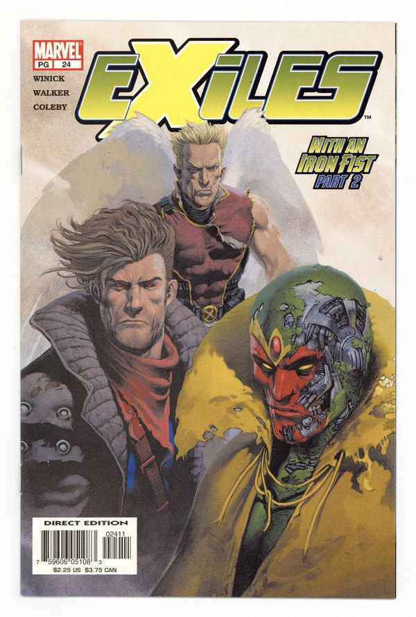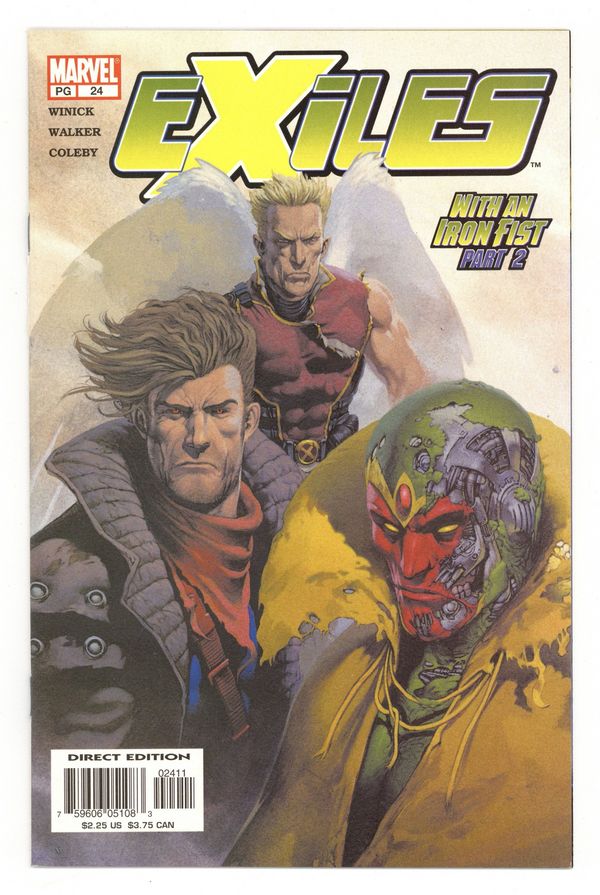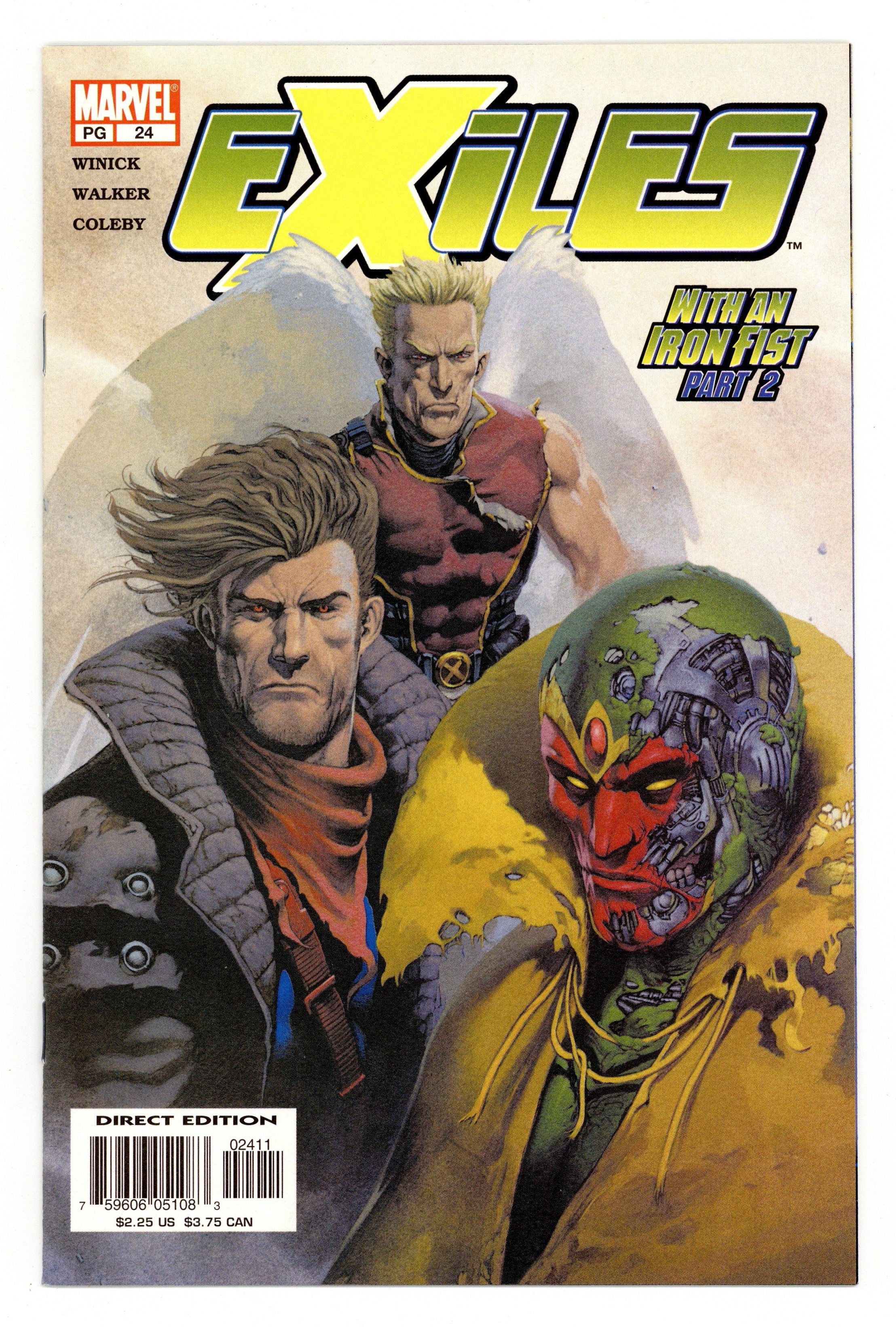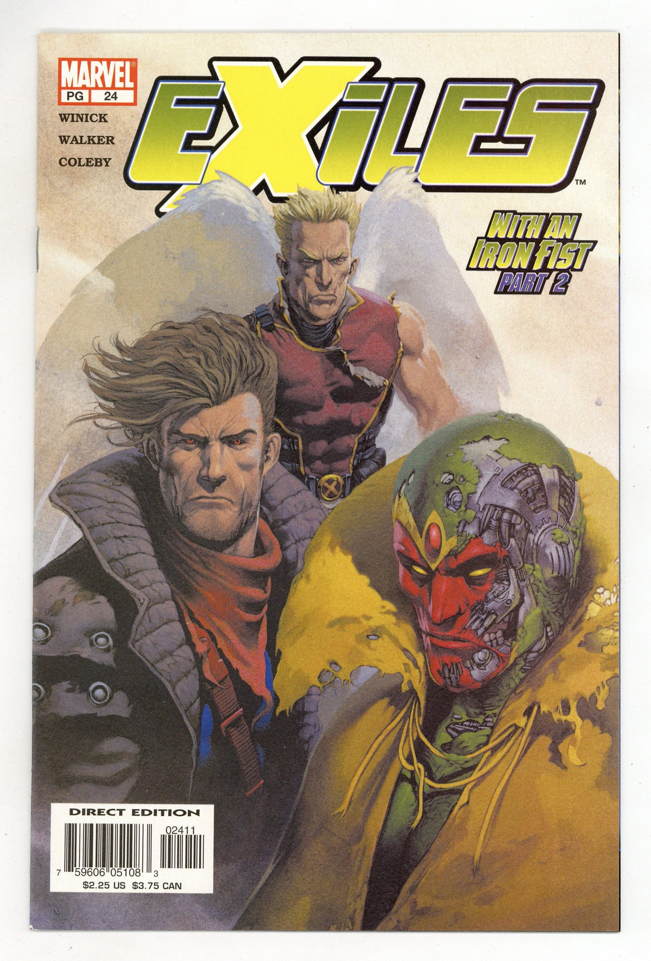 Covers by Kev Walker Judd Winick (w)/Kev Walker (p) Parts 1 & 2 (of 3) of "With An Iron Fist" A new storyline begins with two big issues! The Exiles' reality-hopping evil counterparts, WEAPON X return! But who leads their Sabretooth-less team now? And are they going to save the planet ruled by Iron Man or will they help destroy it? 32 PGS. WITH ADS (each)/FC/MARVEL PG.....$2.25 (each) Cover price $2.25.