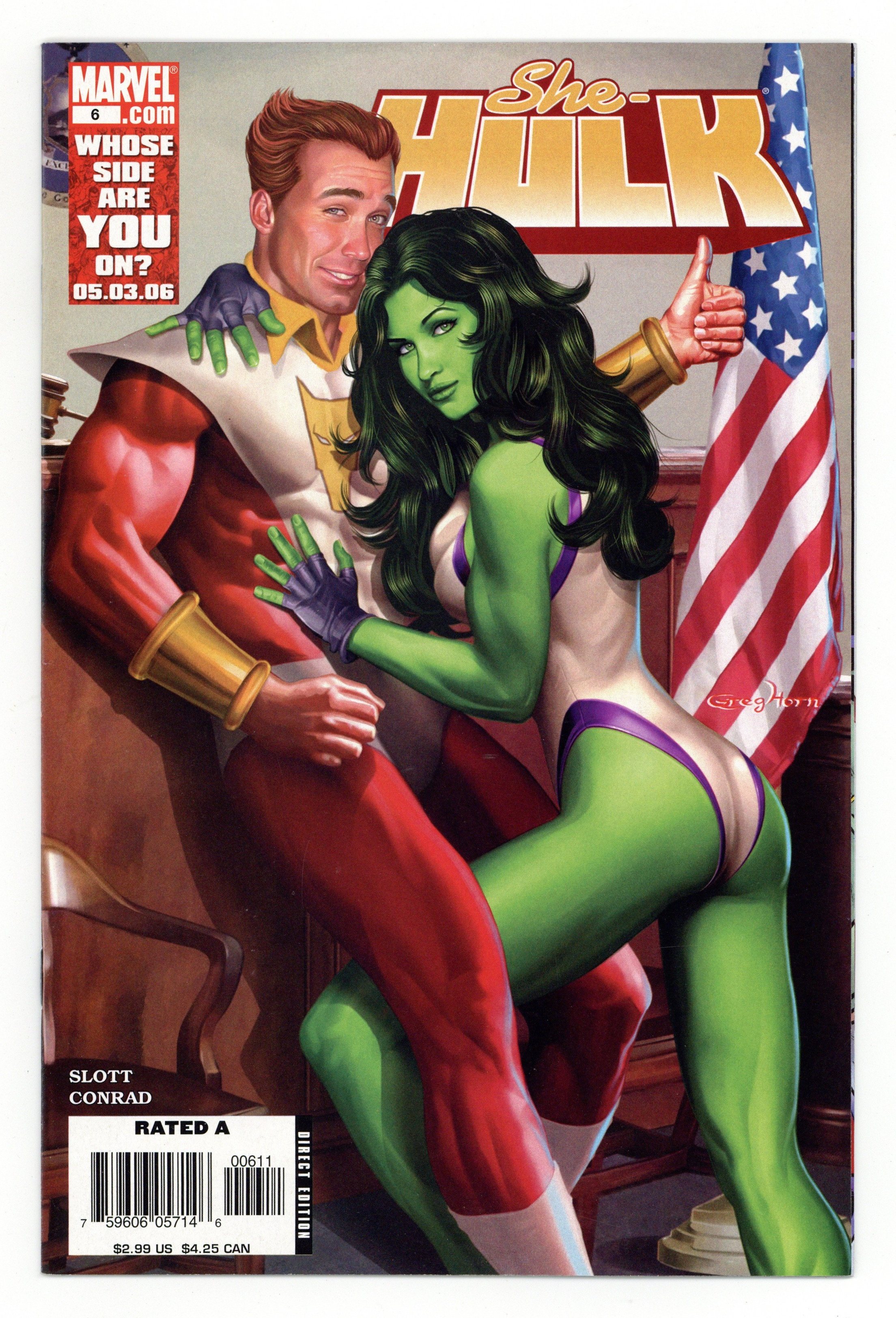 Written by DAN SLOTT Penciled by JUAN BOBILLO Cover by GREG HORN 'I'm With Cupid' She-Hulk's firm is dealing with their first superhuman sexual assault case. Their client? Eros of Titan, the space-faring Avenger called Starfox! And when emotions get over-heated at the office-- expect a love triangle or two to finally come to a head! What will this mean for Pug, She-Hulk, and John Jameson? And who (or what) is Awesome Andy falling for?! Cover price $2.99.