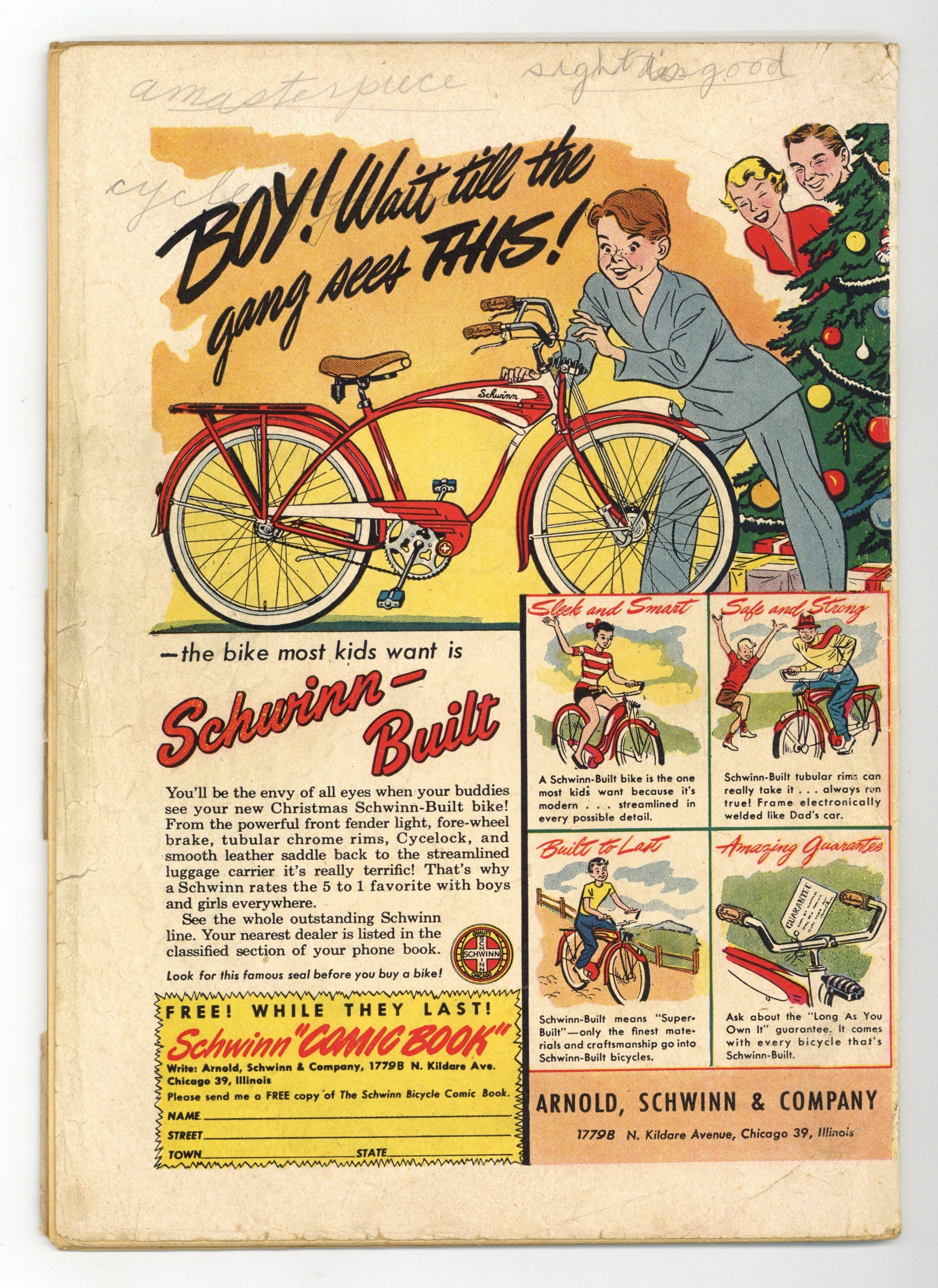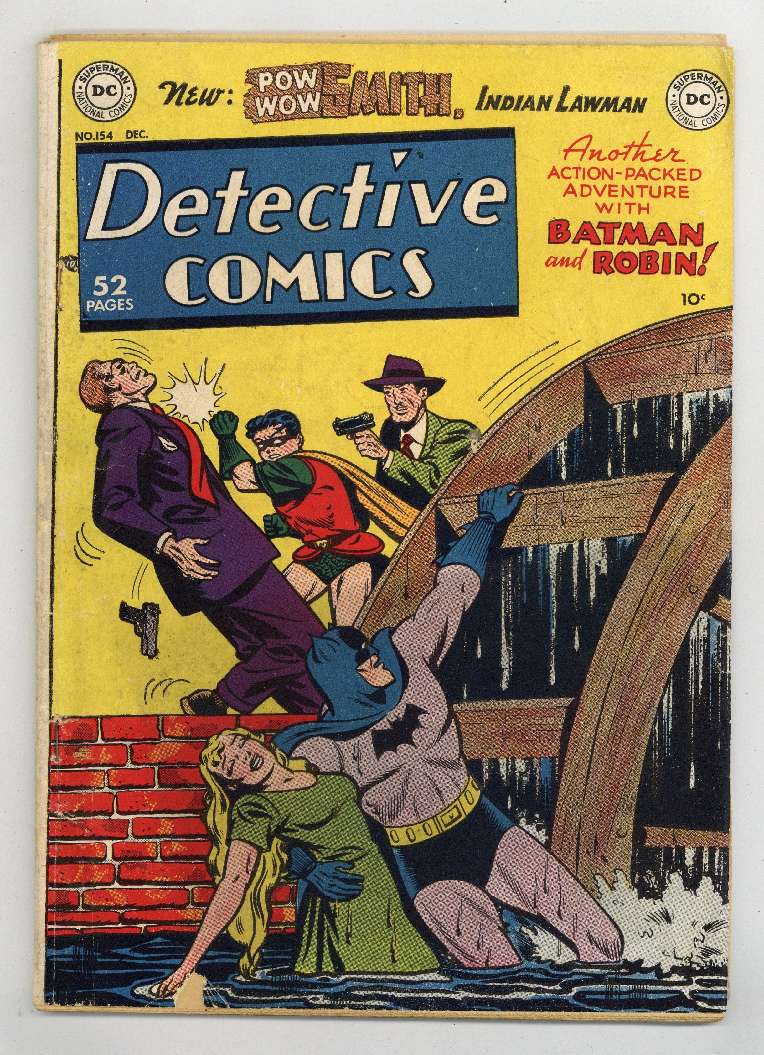 Cover by Jim Mooney and Charles Paris. Stories by Don C. Cameron and unknown. Art by Carmine Infantino, Bob Kane, Charles Paris, Jimmy Thompson, Dan Barry, Sy Barry and unknown. Batman goes undercover in the State Prison as Jim Millan, hoping to discover how prisoners who have escaped from that institution seem to disappear forever. Don't miss Batman and Robin in "Underground Railroad of Crime!" with art by Bob Kane and Charles Paris. Plus: Pow-Wow Smith, Indian Lawman in "Death in the Northwoods!" with story by Don C. Cameron and pencils by Carmine Infantino; Robotman in "Robotman, Mind-Reader" with art by Jimmy Thompson; and Impossible -- But True! tale "The Riddle of the Ruby!" (featuring Roy Raymond) with art by Dan Barry and Sy Barry. Also: Shorty 1-pager by Henry Boltinoff, and 2-page text piece "Science Is Champ" by Quincy Howe. And: 1-page public service announcement "The Green Arrow and the Red Feather Kid" by Jack Schiff and George Papp. 52 pages, full color. Cover price $0.10.