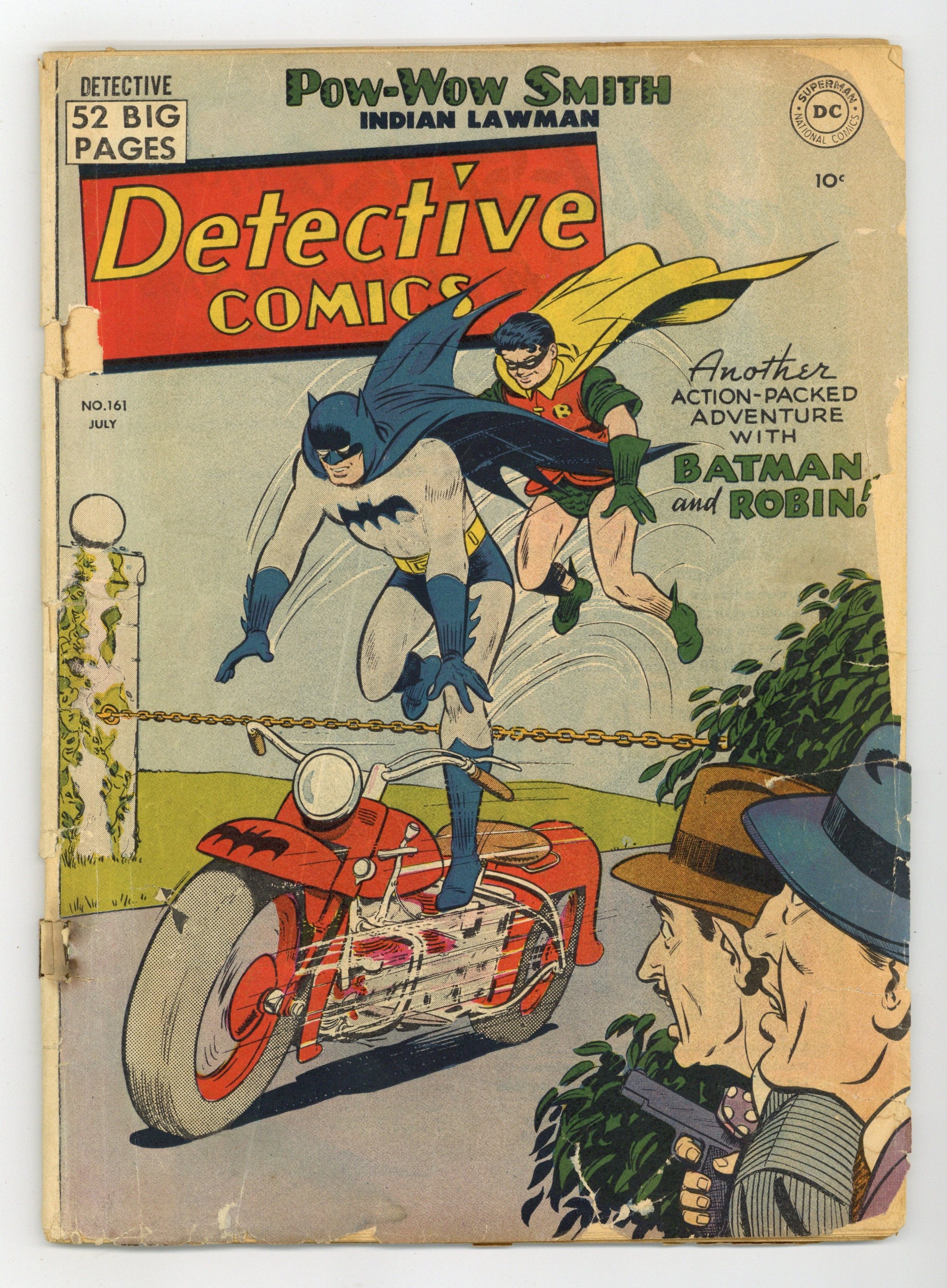 Cover by Win Mortimer. Stories by Don C. Cameron and unknown. Art by Bob Kane, Lew Sayre Schwartz, Charles Paris, Tom Cooke, Dan Barry and unknown. Batman faces a clever criminal that targets theatrical producers, telling each of them that they will die at midnight. The "death" of Batman provides a clue to that killer. Don't miss Batman and Robin in "The Men Who Died on Time!" with art by Bob Kane, Lew Sayre Schwartz and Charles Paris. Plus: Pow-Wow Smith, Indian Lawman in "Two Detectives Named Smith!" with story by Don C. Cameron; Robotman in "Diamond Key to Doom!" with art by Tom Cooke; and Impossible -- But True! tale "The Human Super Weapon!" (featuring Roy Raymond) with art by Dan Barry. Also: Daffy & Doodle half-pager by Lit-Win, reprinted from Action Comics (1938 DC) #100; Little Pete 1-pager by Henry Boltinoff; 2-page text piece "Businessman's Best Friend"; and Casey the Cop half-pager by Boltinoff. 52 pages, full color. Cover price $0.10.