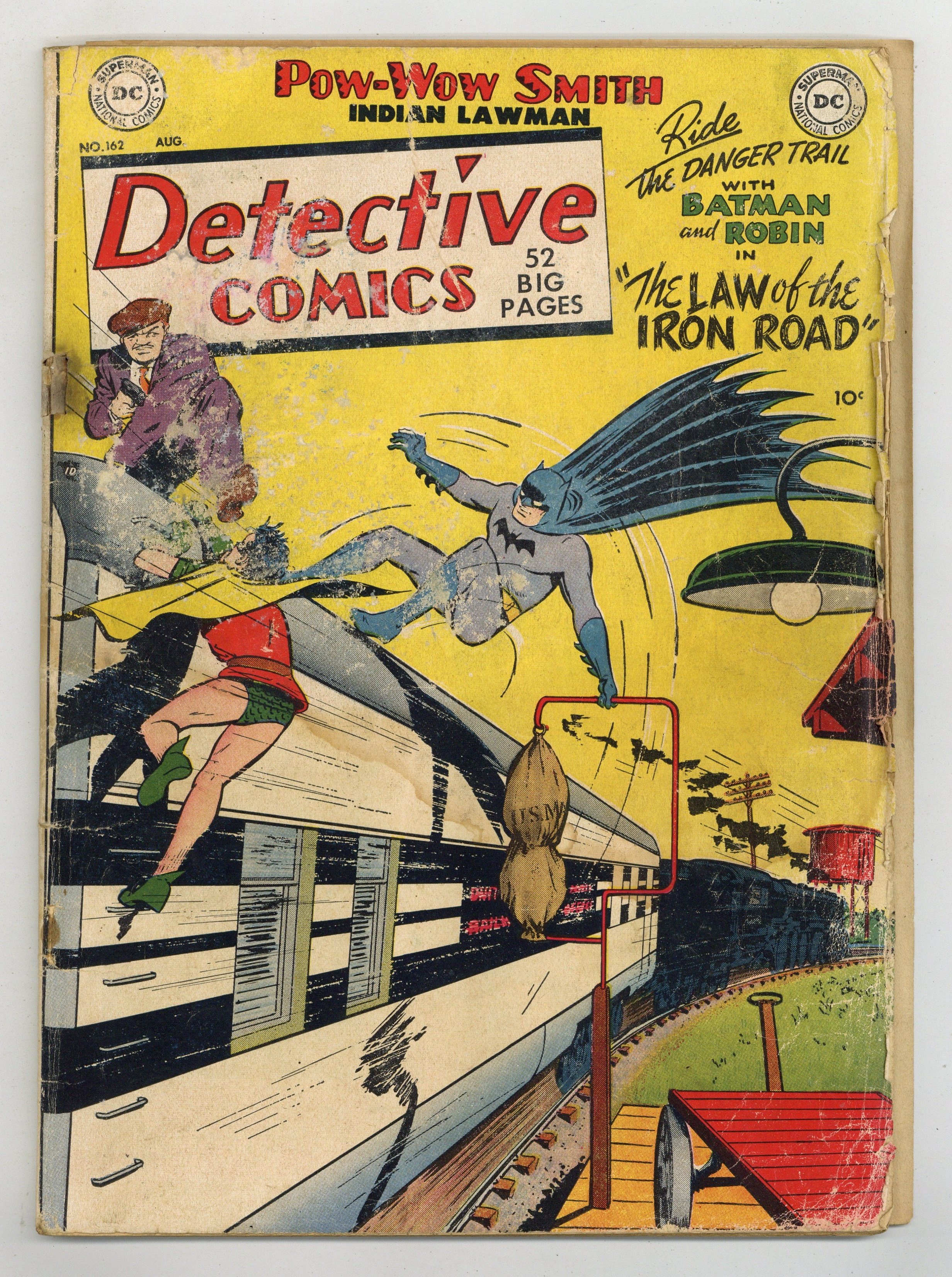 Cover by Win Mortimer. Stories by Don C. Cameron and unknown. Art by Bob Kane, Lew Sayre Schwartz, Charles Paris, Tom Cooke, Dan Barry and unknown. Batman decides to introduce Robin to the workings of the Railroad Protective Association and both are assigned to work with one of their top agents in "The Law of the Iron Road!" with art by Bob Kane, Lew Sayre Schwartz and Charles Paris. Plus: Pow-Wow Smith, Indian Lawman in "Cowboys and Indians!" with story by Don C. Cameron; Robotman in "The Disjointed Robotman" with art by Tom Cooke; and Impossible -- But True! tale "The Valley of Giant Insects" (featuring Roy Raymond) with art by Dan Barry. Also: Casey the Cop 1-pager by Henry Boltinoff; Chip half-pager; 2-page text piece "Why You Are You" by Earl Smith; Shorty 2-pager by Boltinoff; Ton o' Fun 1-pager by Harry Lampert; and Ton o' Fun half-pager by Lampert. And: Superboy in the 1-page public service announcement "Job Counselor" by Jack Schiff and Win Mortimer. 52 pages, full color. Cover price $0.10.